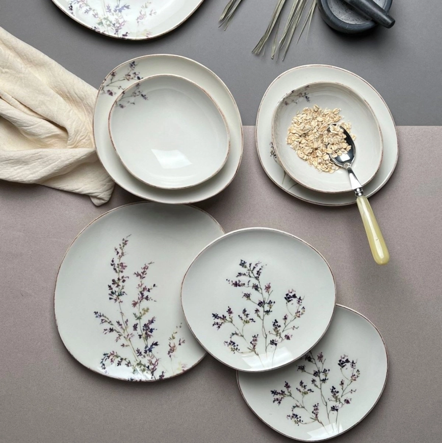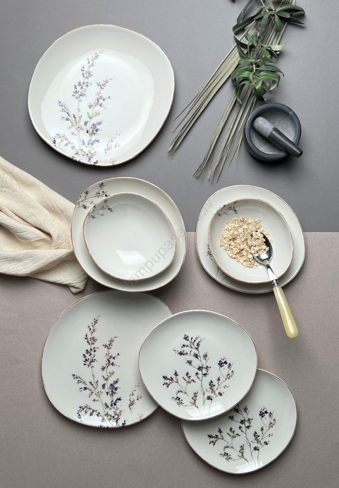 12 daļu galda servīze, balta/violeta, no porcelāna