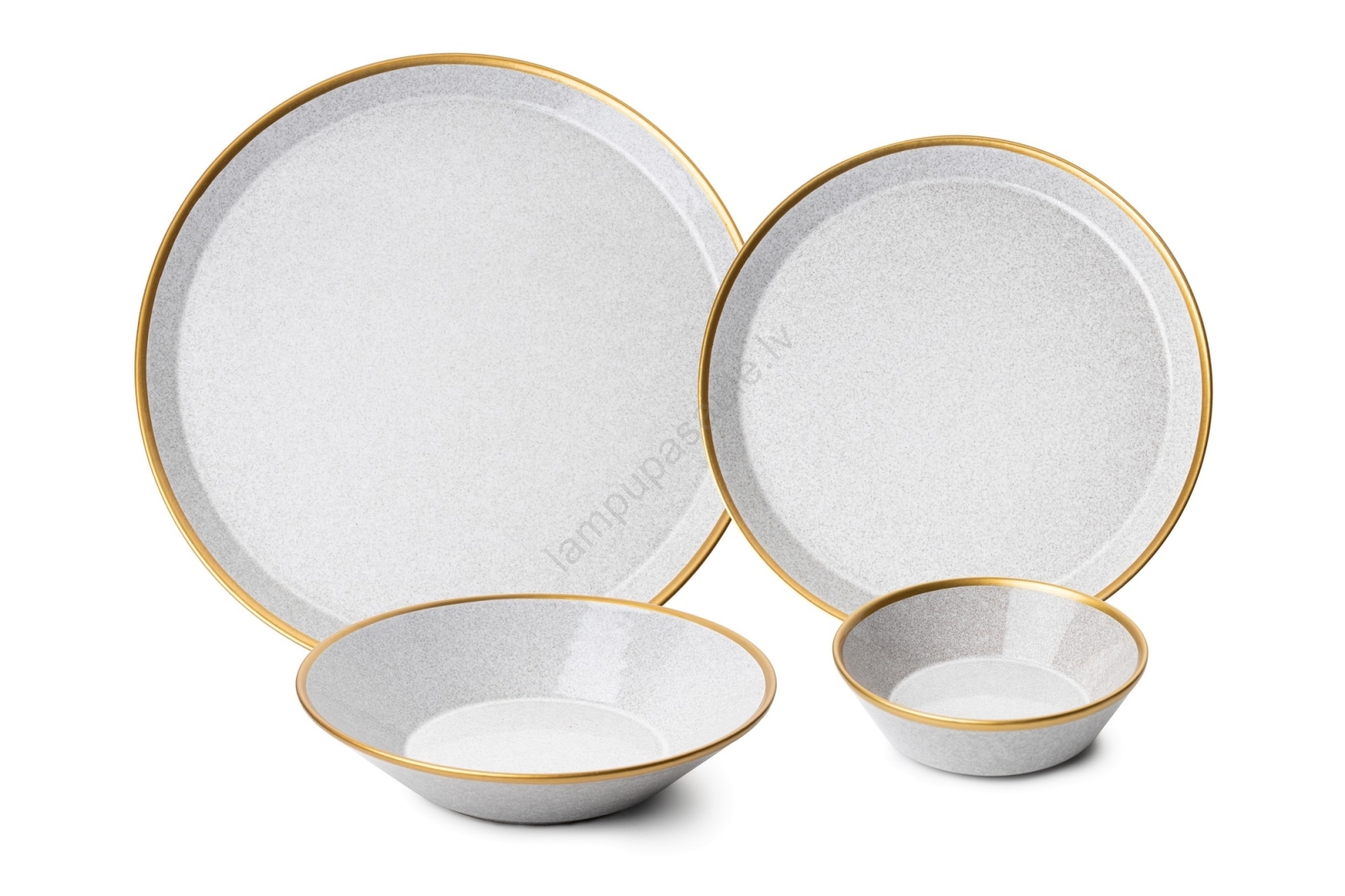 16 daļu galda servīze, pelēka/zelta, porcelāns | Lampupasaule