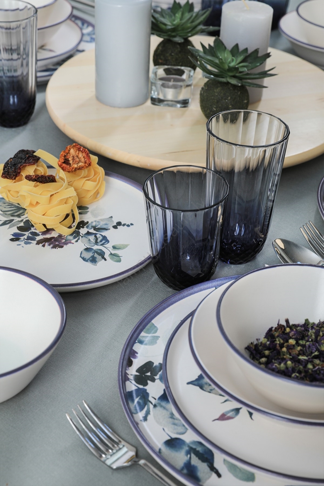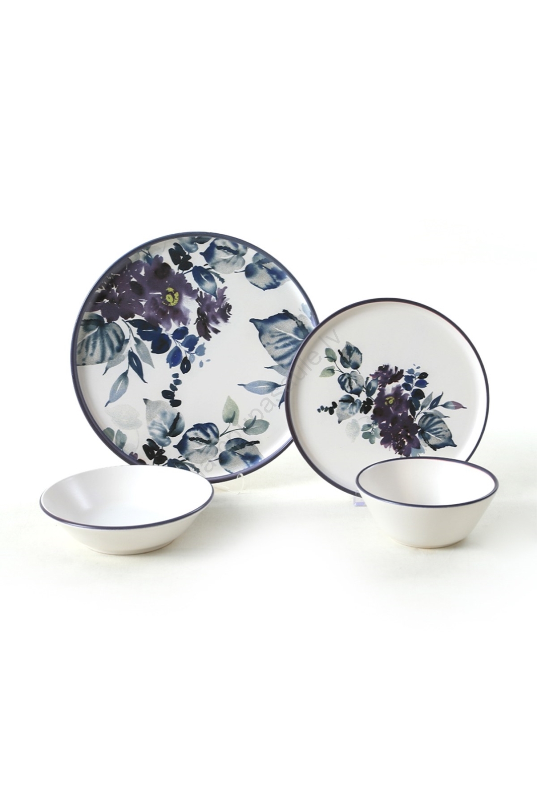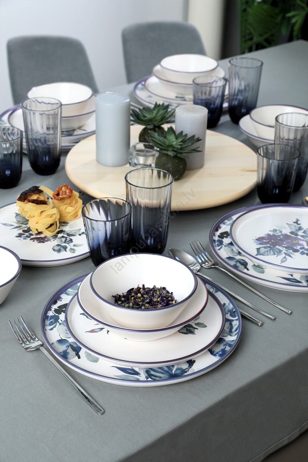 24 daļu galda trauku komplekts balts/zils/keramika | Lampupasaule