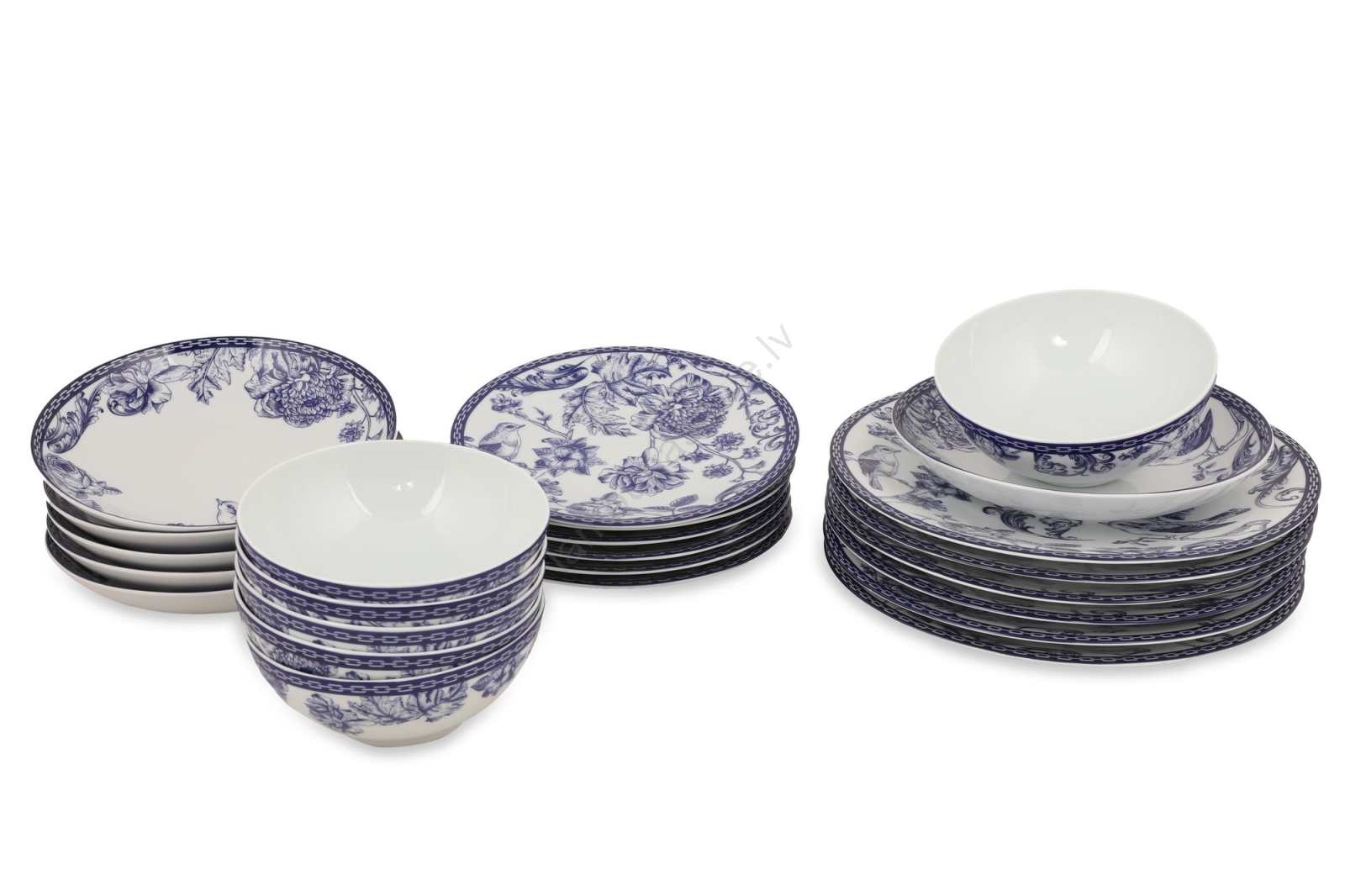 24 daļu galda trauku komplekts, balts/zils, porcelāns | Lampupasaule