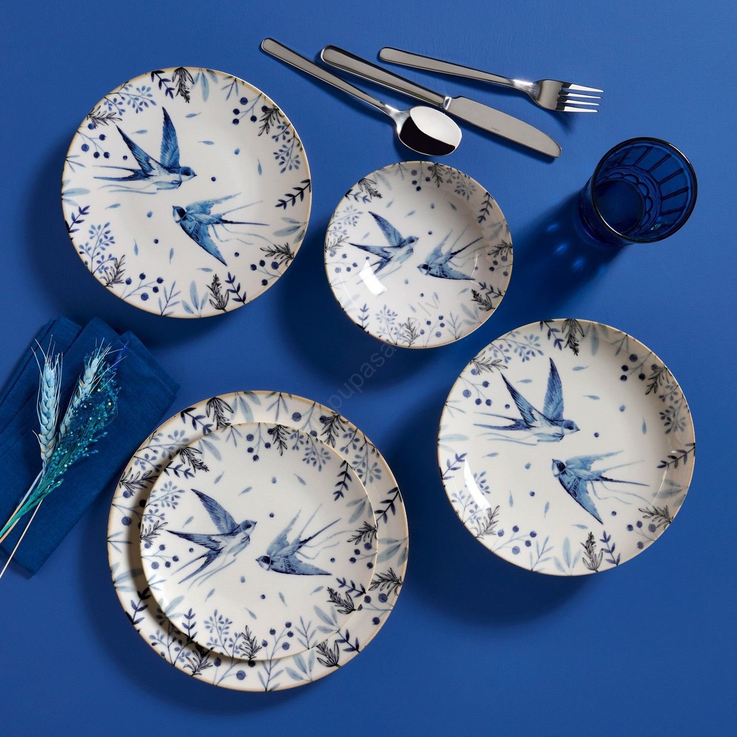 24 daļu porcelāna servīzes komplekts, balta/zila | Lampupasaule