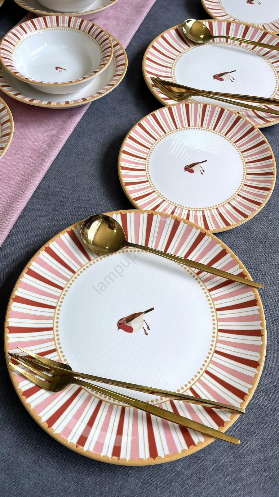 24 daļu servīze balta/sarkana/zeltaina/keramika