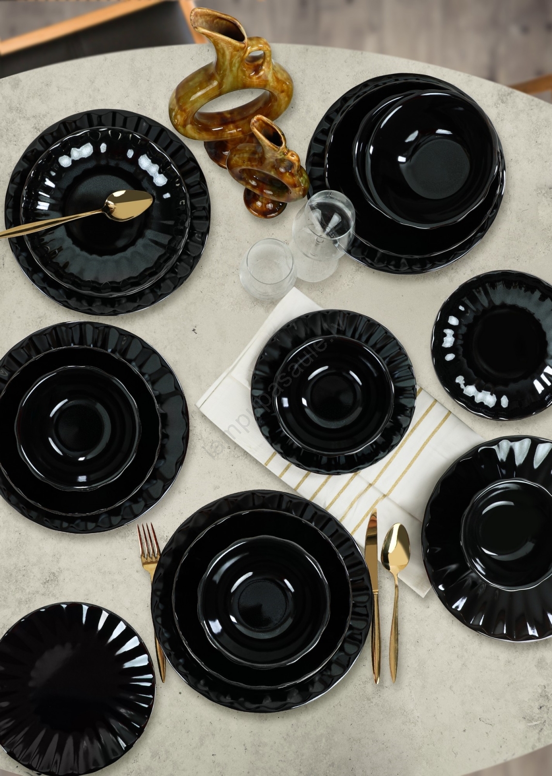 24 gab. melna akmensmasas ēdienu servīze