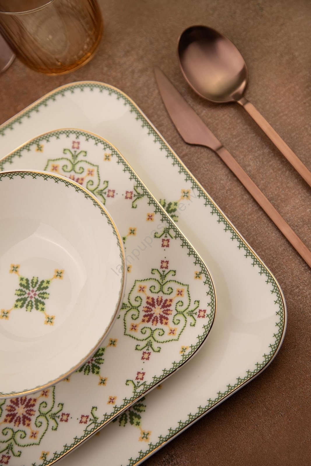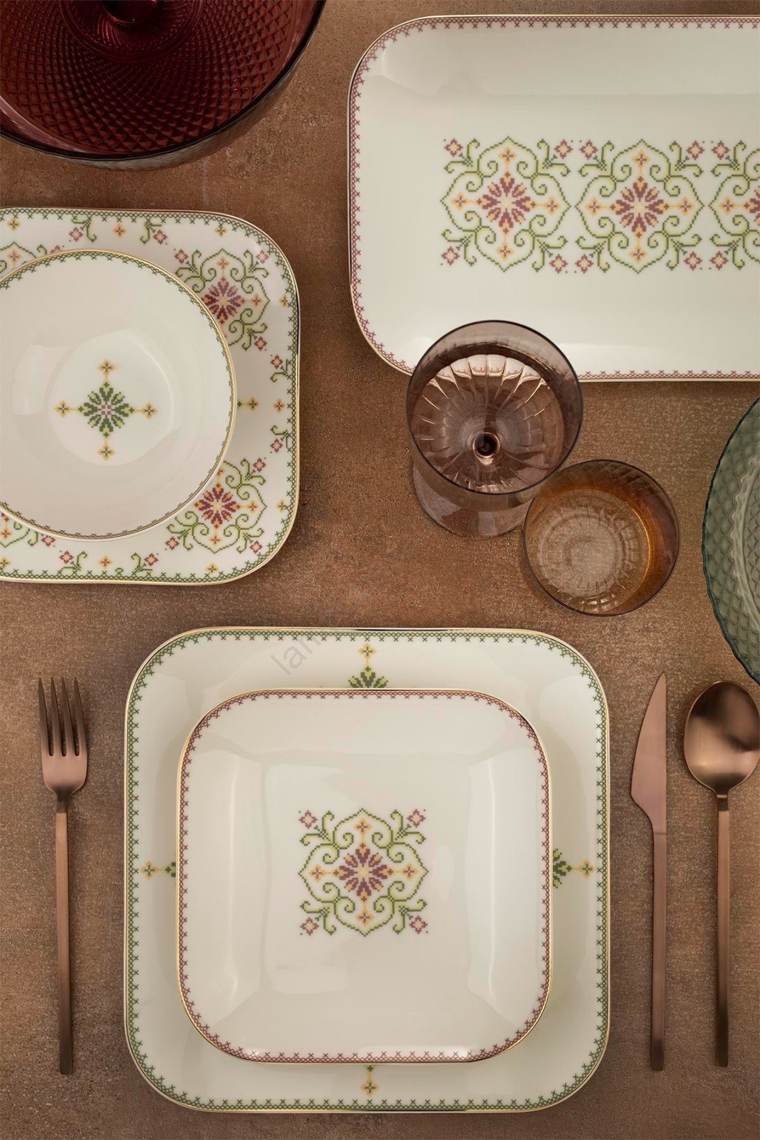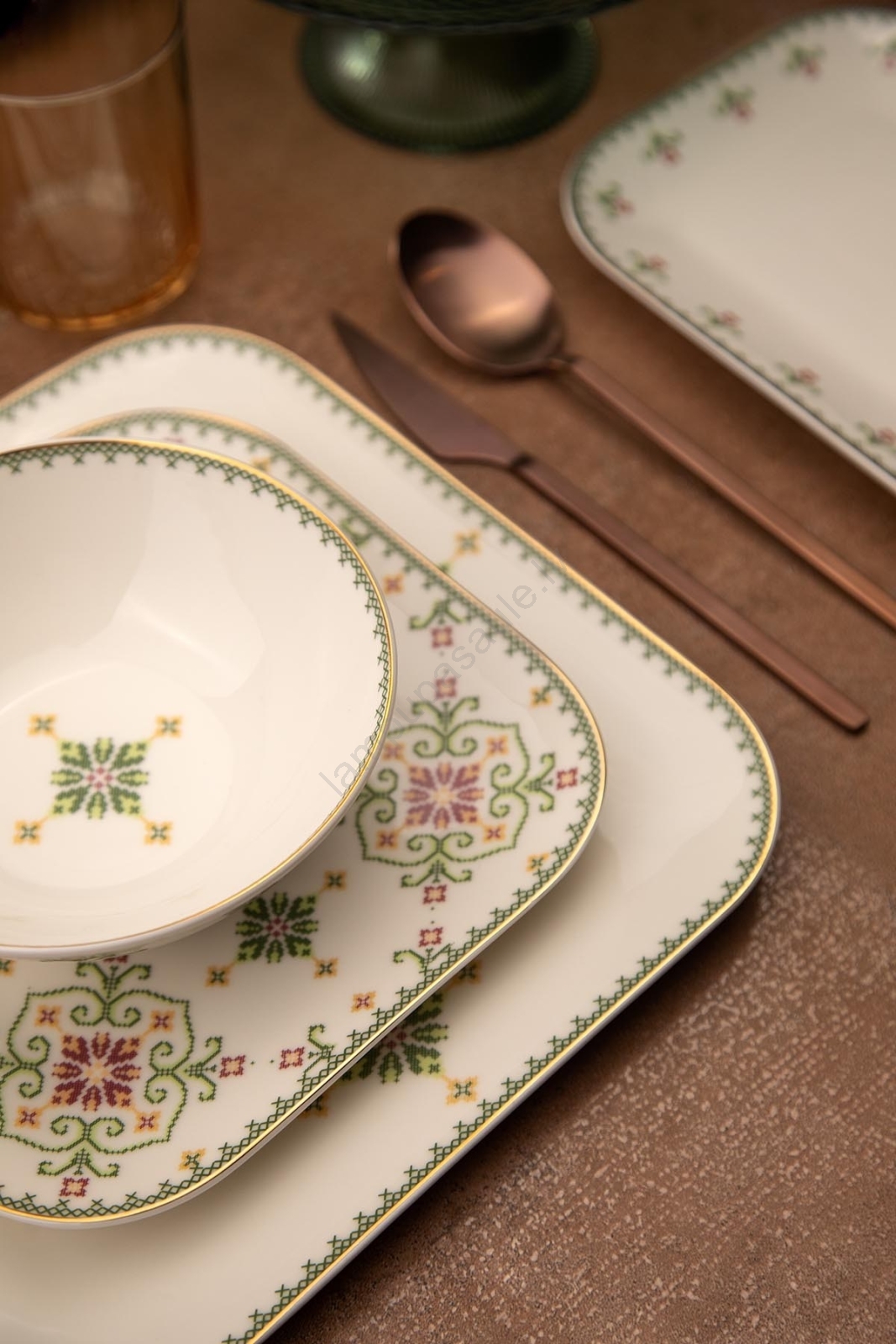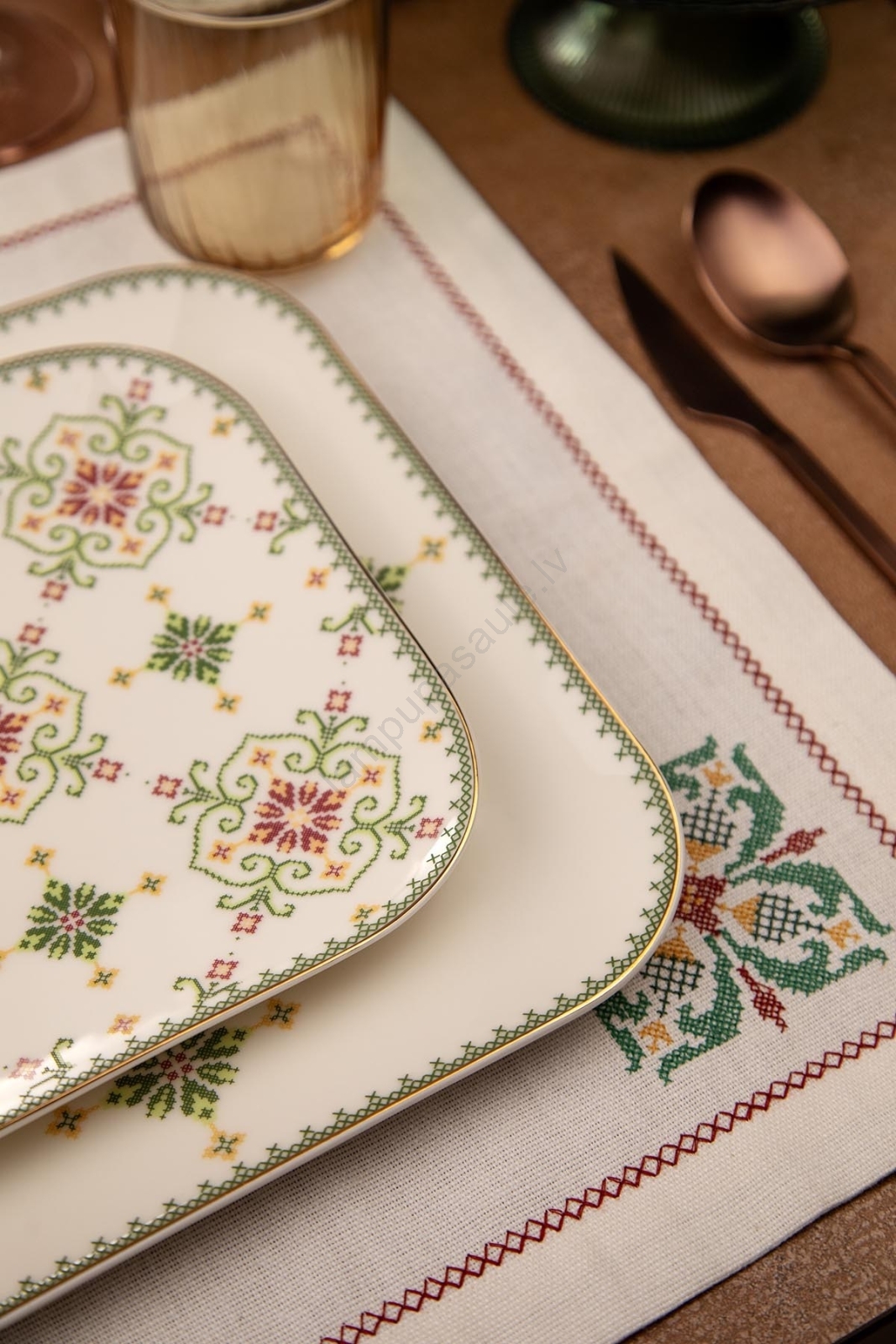26 daļu porcelāna galda servīze, balta/zaļa | Lampupasaule