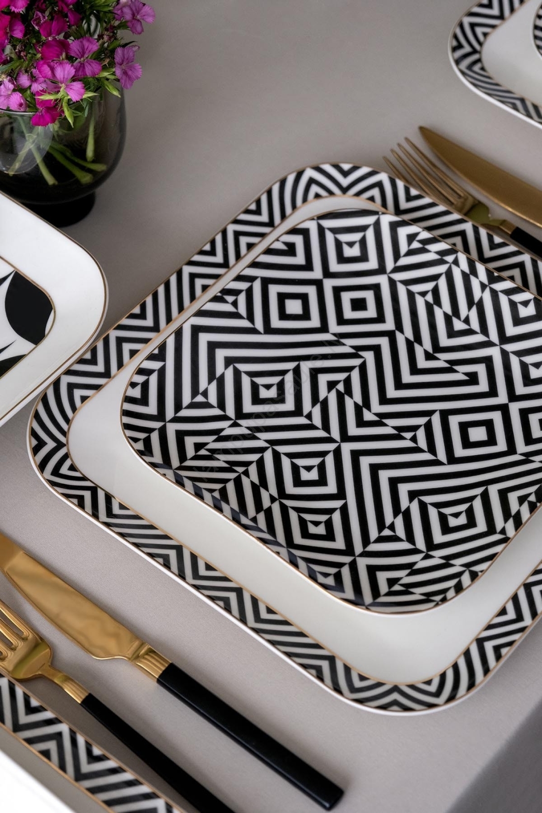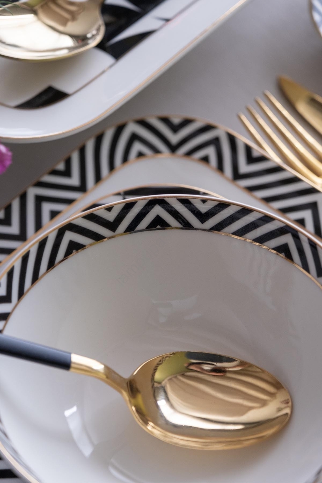 26 daļu vakariņu servīze — balta/melna, no porcelāna | Lampupasaule