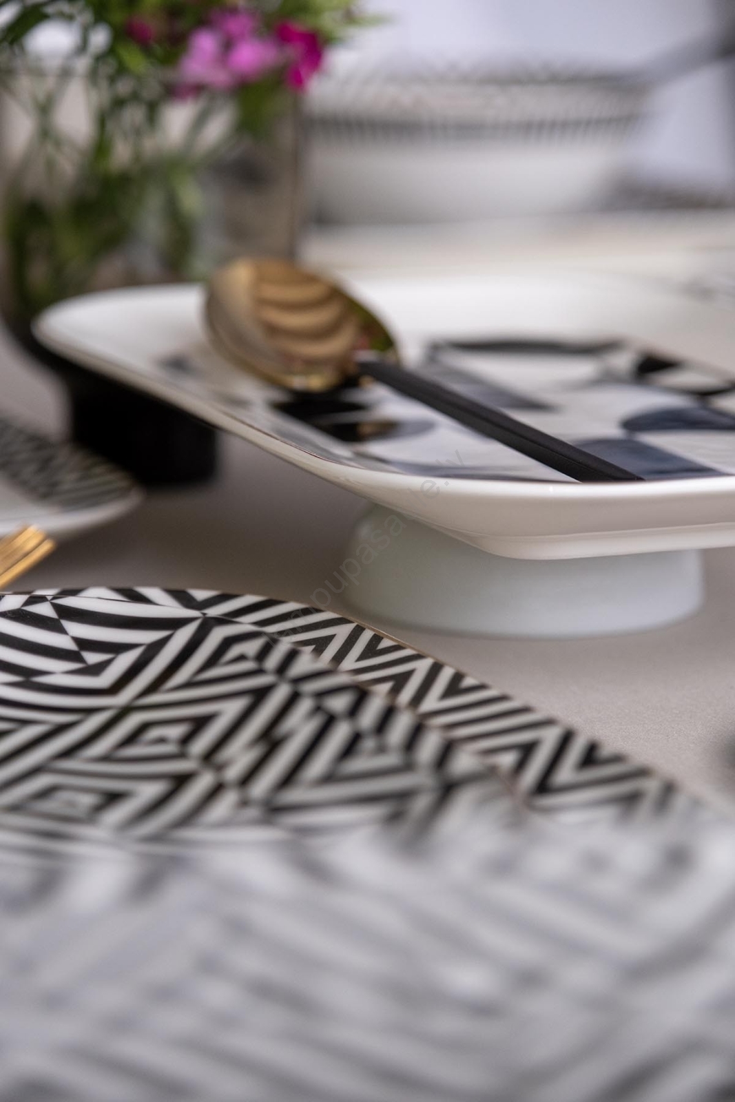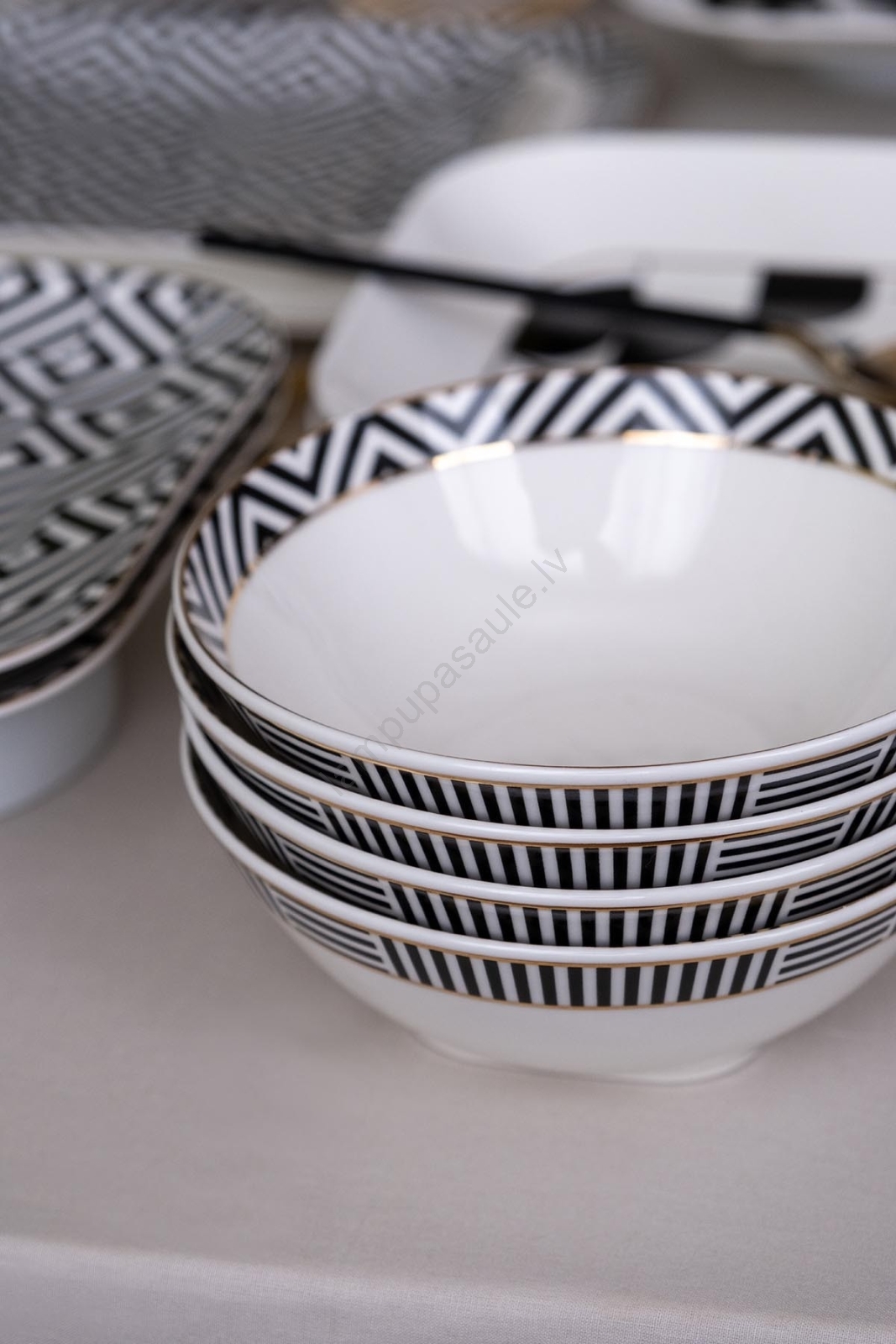 26 daļu vakariņu servīze — balta/melna, no porcelāna