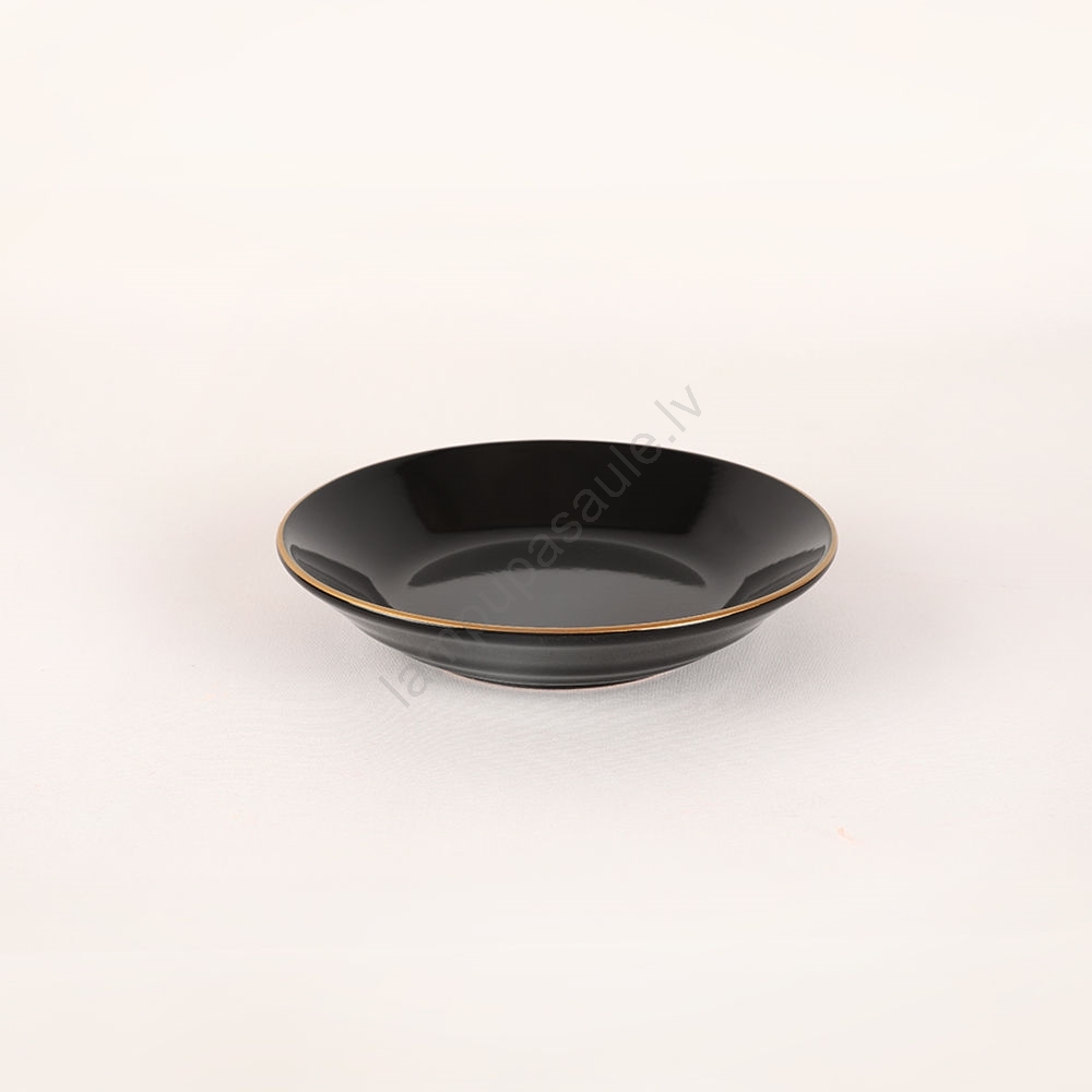 44 daļu vakariņu servīze — melna ar zelta akcentiem, izgatavota no akmens keramikas | Lampupasaule