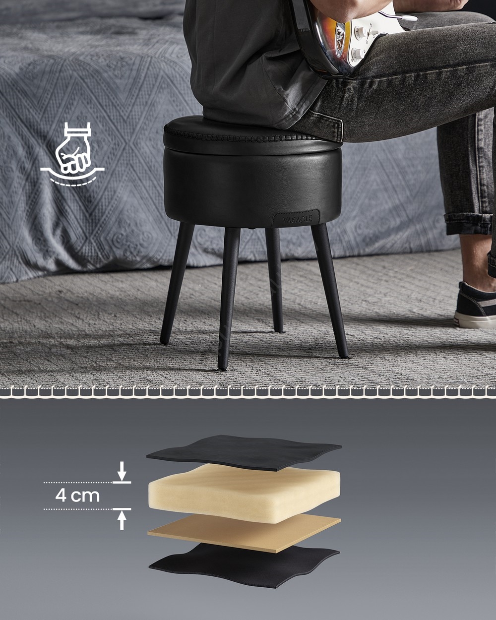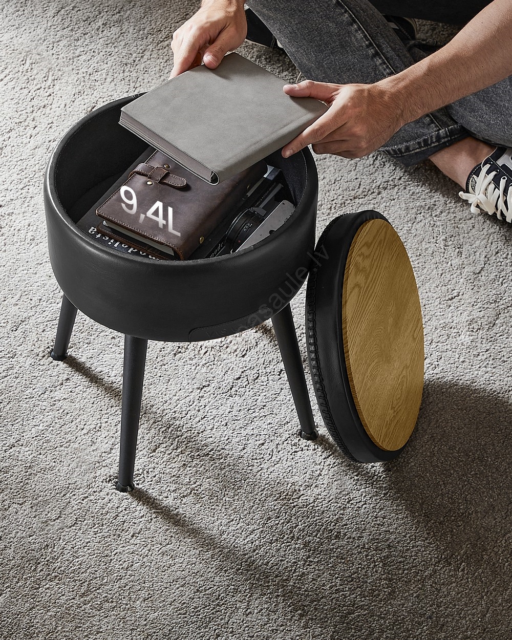 • Taburetes iekšienē ir vieta (9,4 l) elektronikai, grāmatām, segām un citām sīklietām.