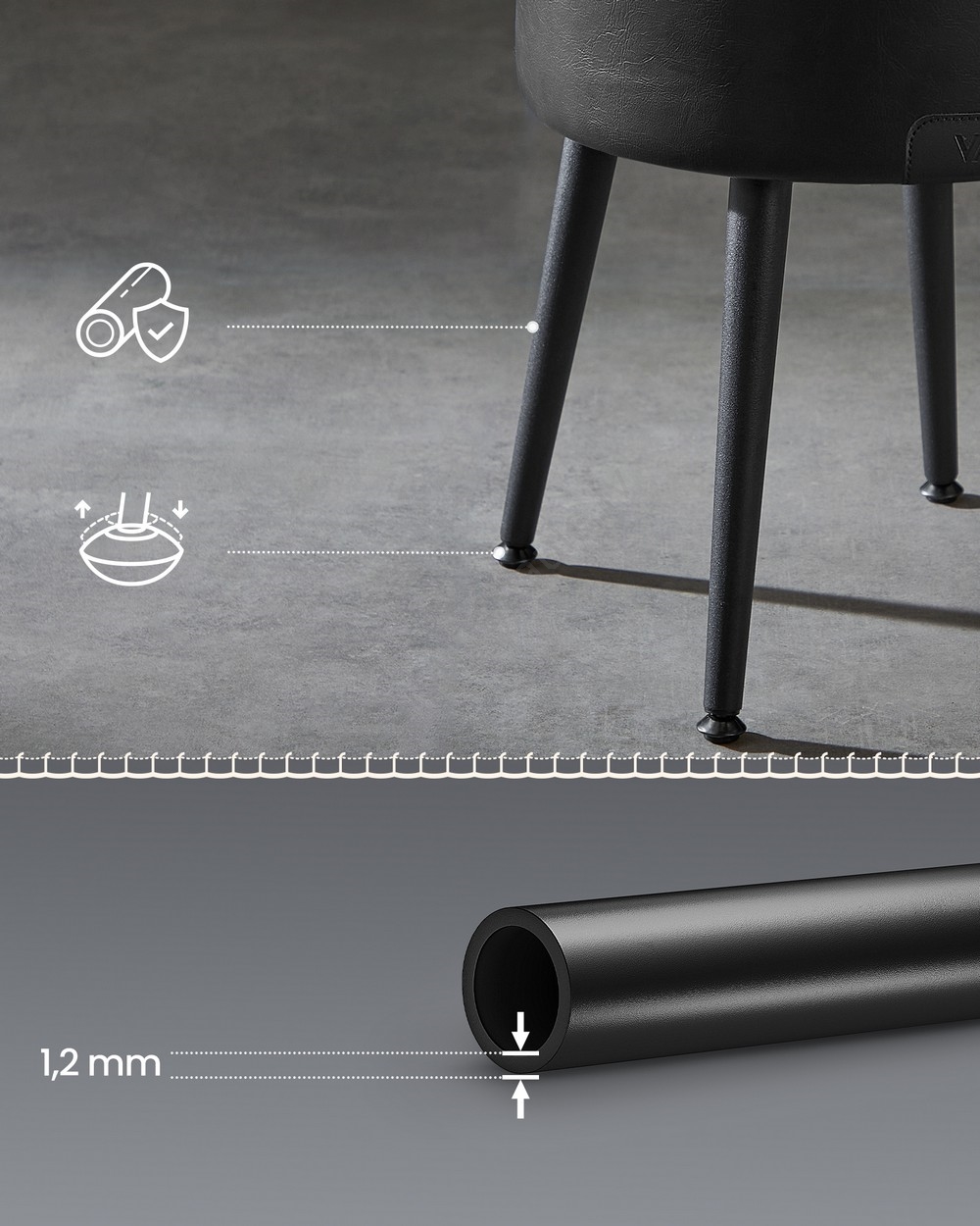 • Elegantas tērauda kājas ar regulējamām kājiņām piešķir mūsdienīgu izskatu, iztur līdz 150 kg un nodrošina stabilitāti un ilgmūžību.