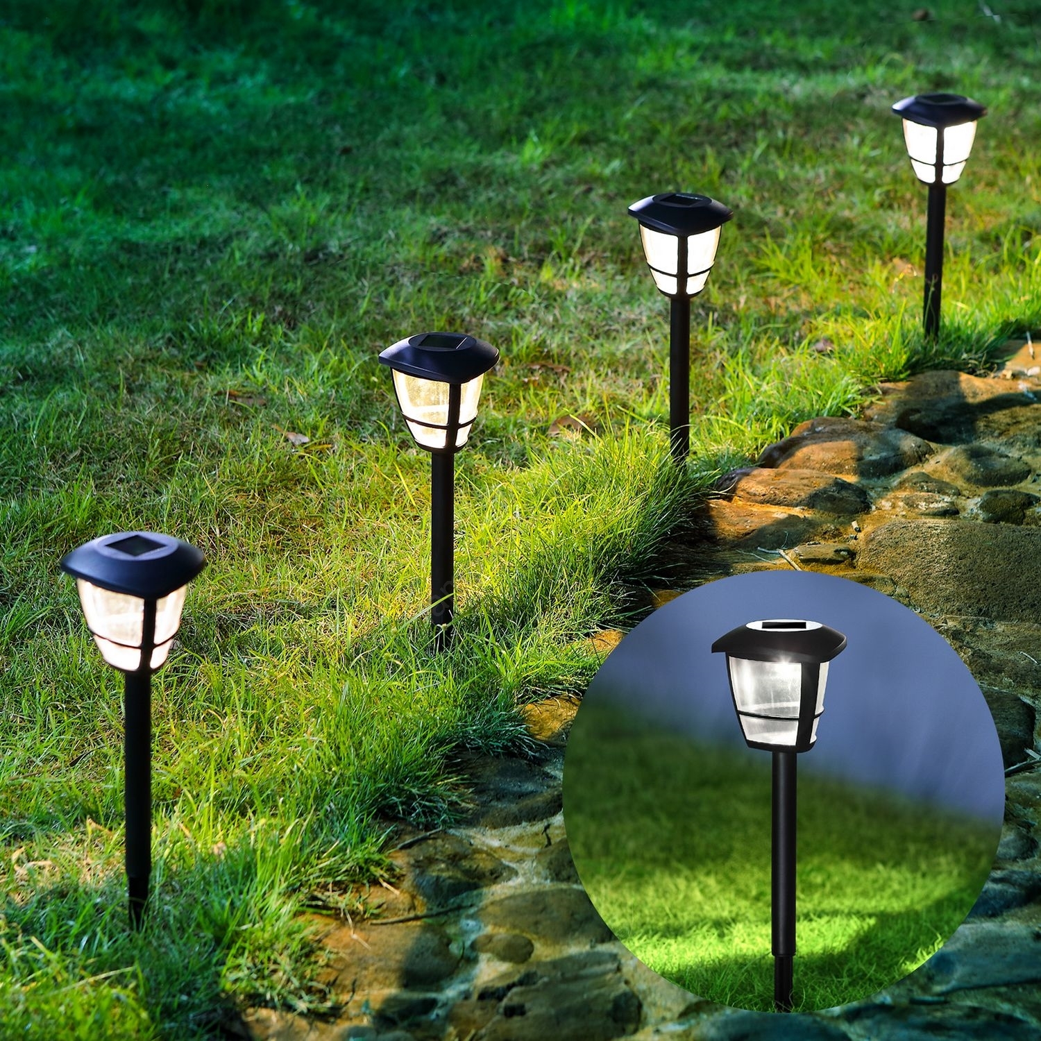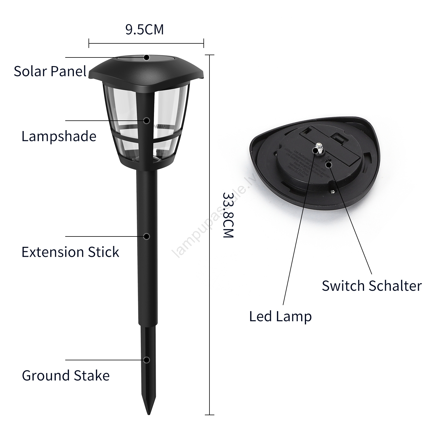 Aigostar - KOMPLEKTS 12x LED saules lampas LED/0,06W/2V 33,8 cm 6500K 100 mAh IP44 melnas