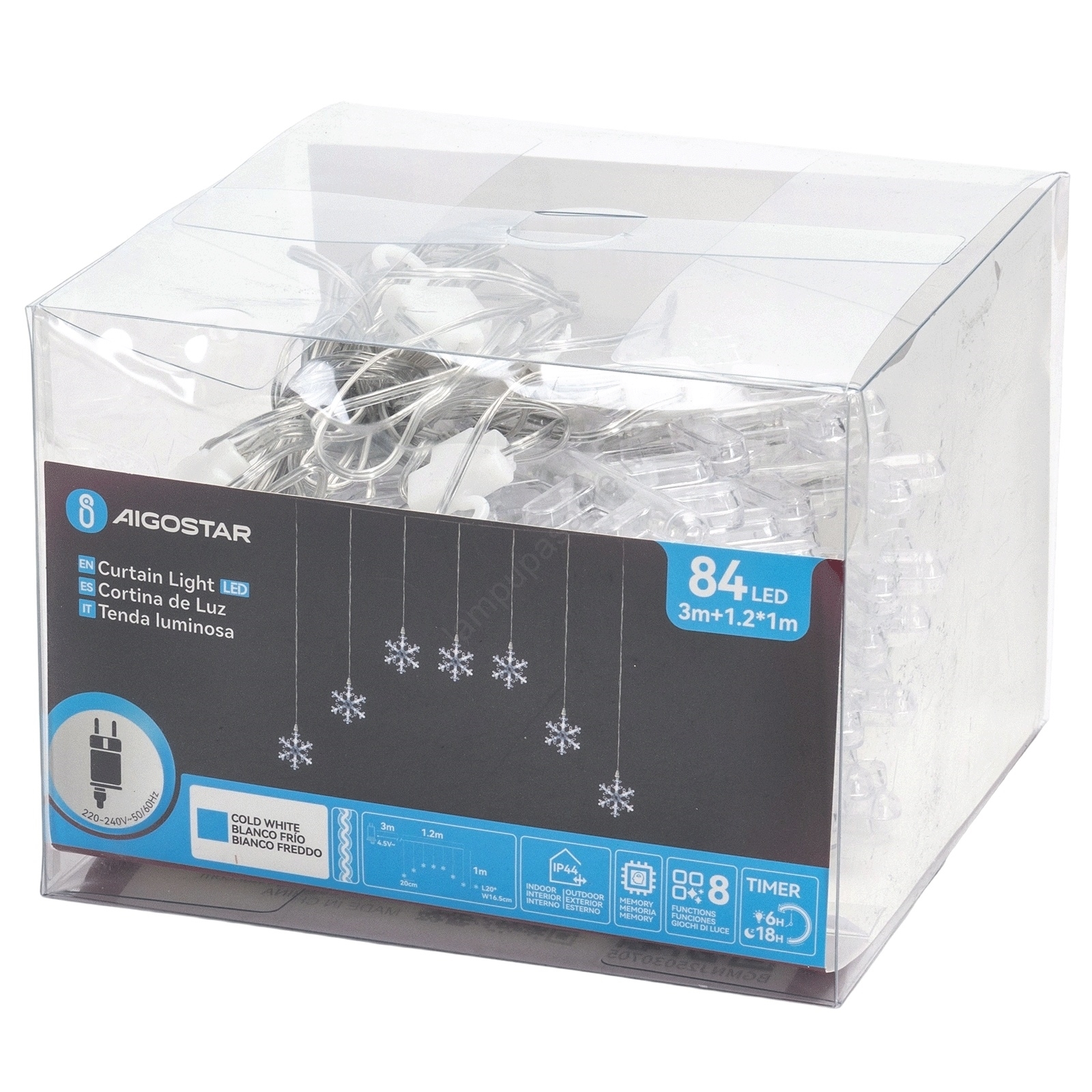 • Aigostar - LED āra virtene 84xLED/8 funkcijas 1,2x1m IP44 auksti balta sniegpārslas