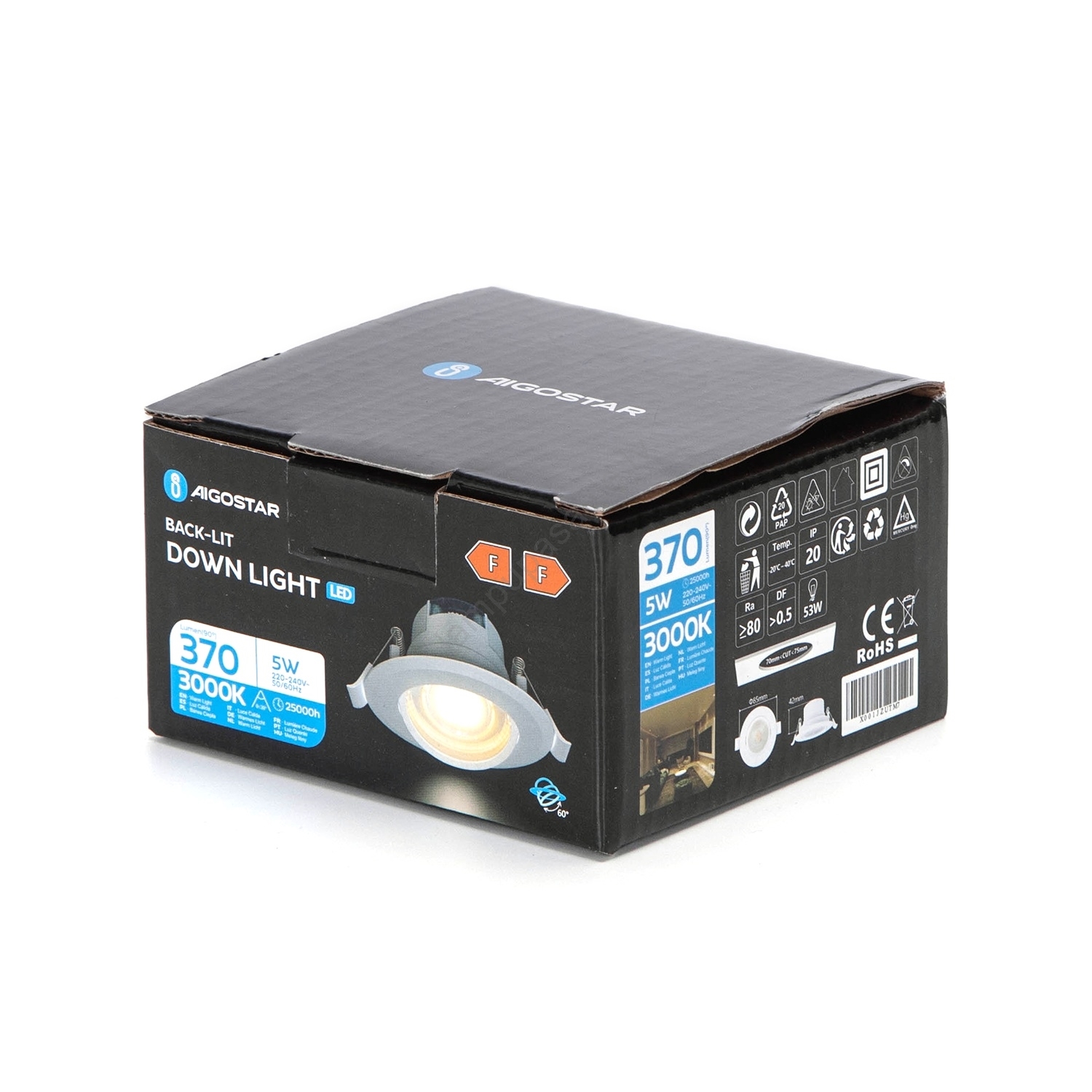• Aigostar - LED iebūvējams griestu gaismeklis, 5 W, 230 V, 6500 K, diametrs 8,5 cm, balts
