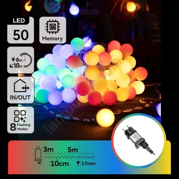 Aigostar - LED āra dekoratīvā gaismu virtene 50 LED/8 funkcijas 5 m IP44 daudzkrāsaina