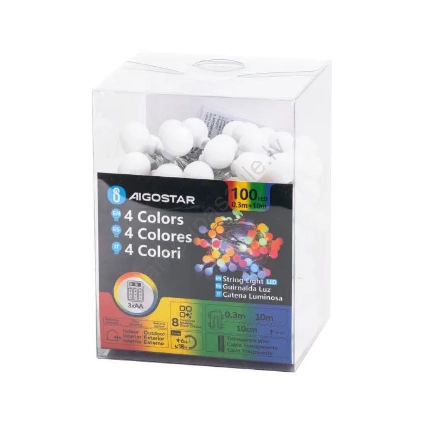 Aigostar - LED āra Ziemassvētku gaismas virtene 100x LED/3xAA/8 režīmi 10,3 m IP44 daudzkrāsaina | L