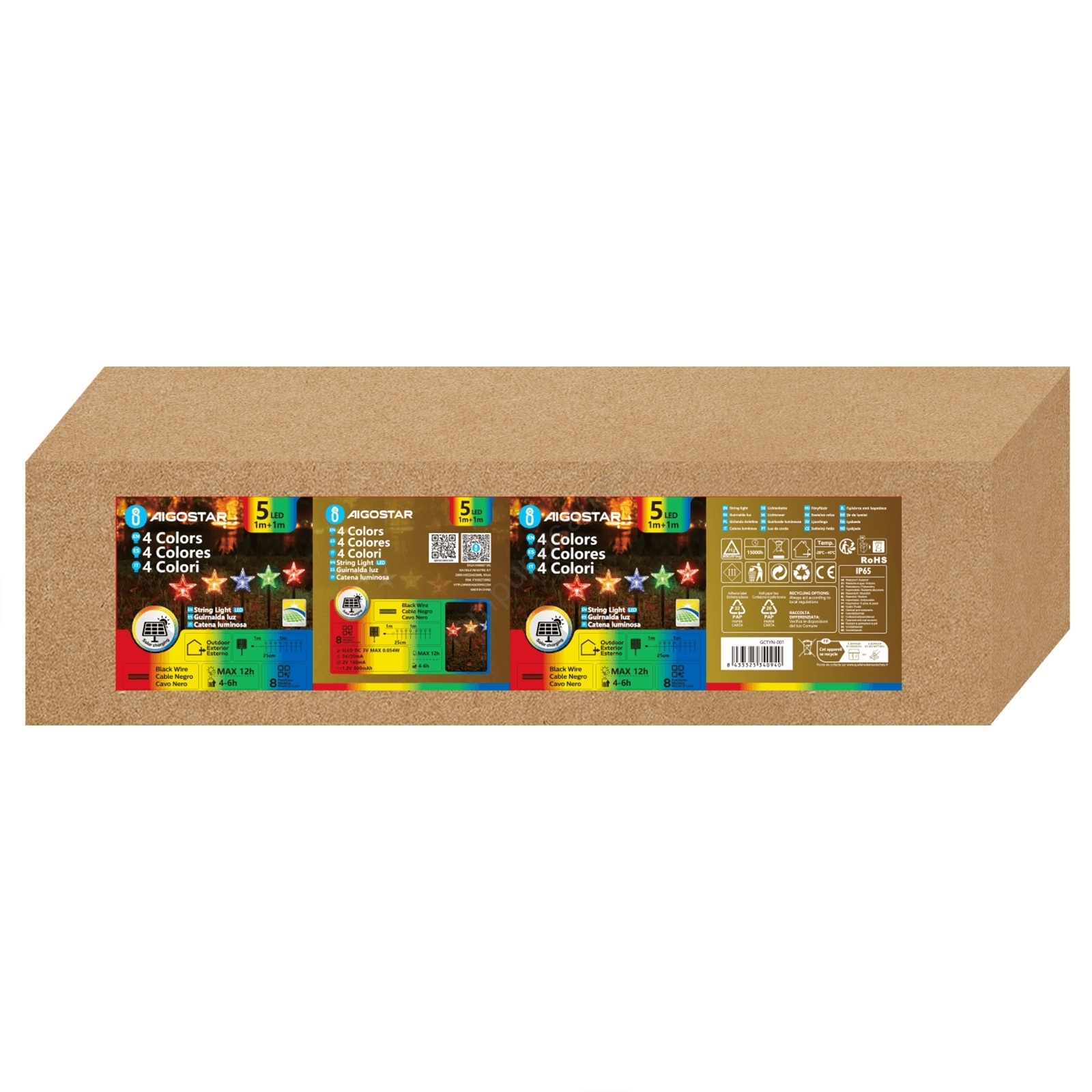 Aigostar - LED RGBY saules darbināms Ziemassvētku gaismeklis 5xLED/1,2V/8 režīmi 1m IP65 800mAh zvaigznes