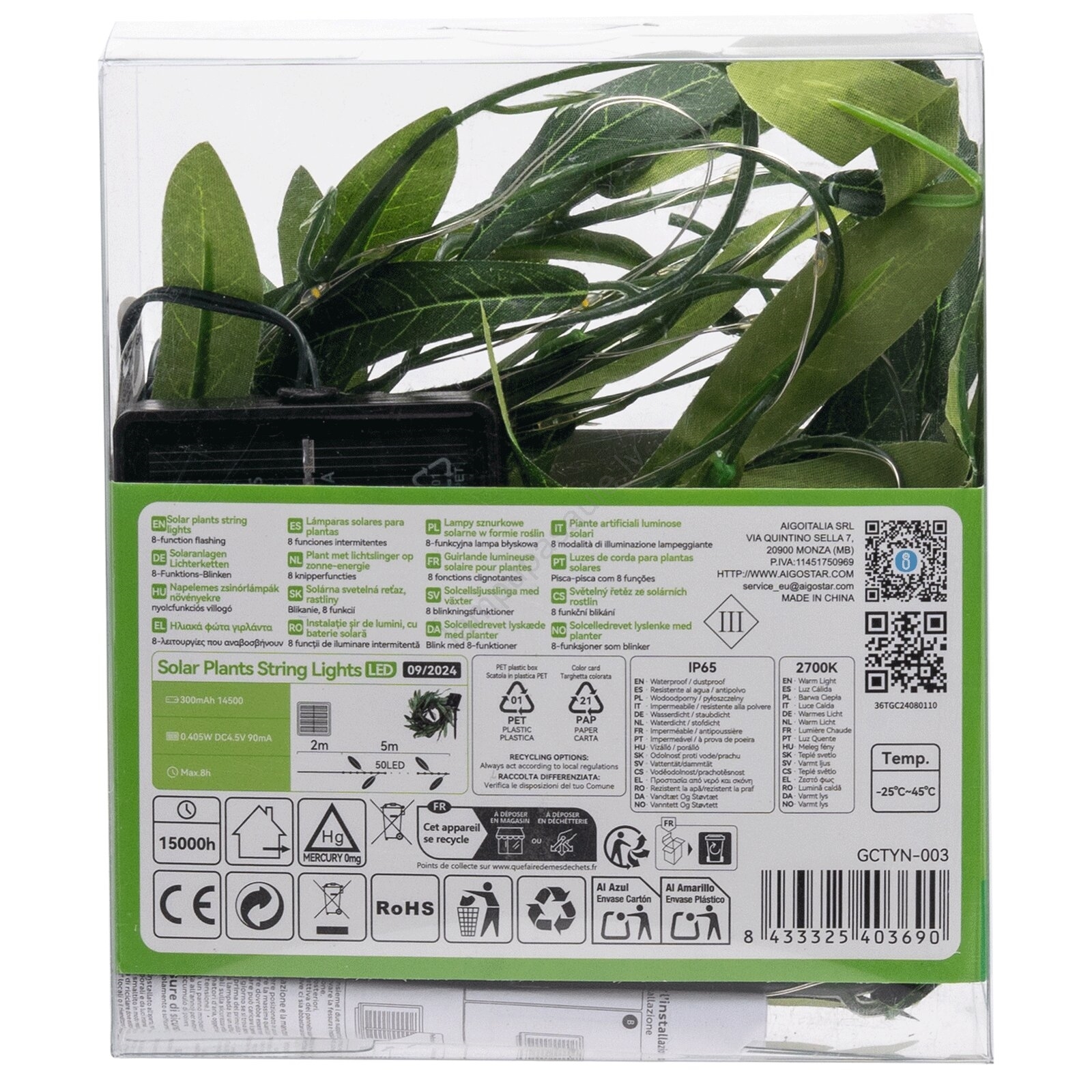 Aigostar - LED saules virtene 50xLED/7m IP65 silti balta olive | Lampupasaule