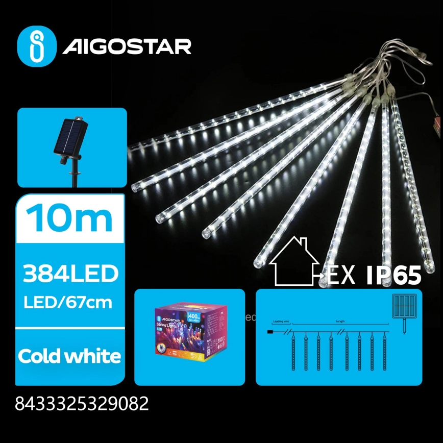 • Aigostar - LED saules virtene 384xLED/13m IP65 1200 mAh auksti balta