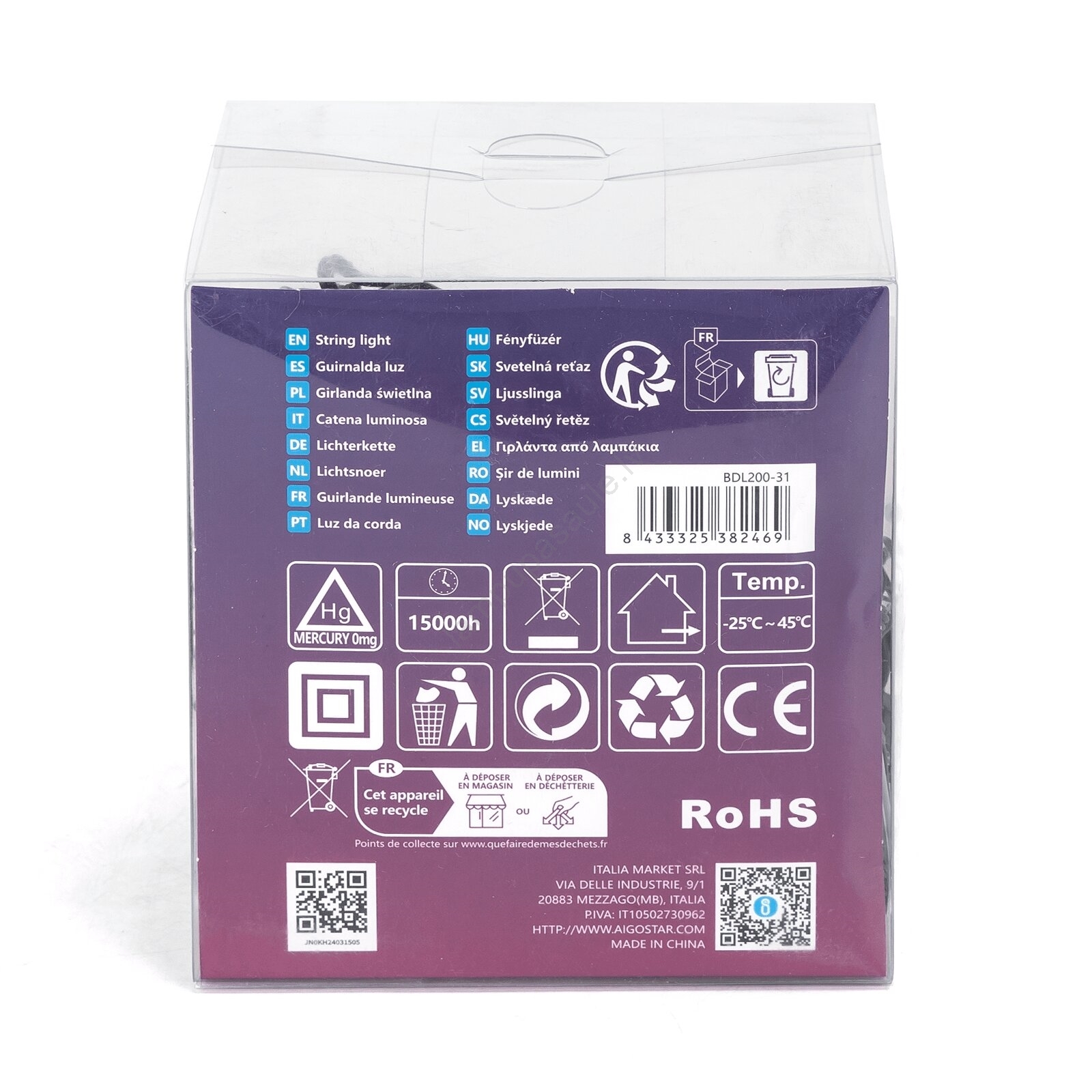 • Aigostar - LED āra Ziemassvētku virtene, 200 LED, 8 režīmi, 13 m, IP44, silti balta