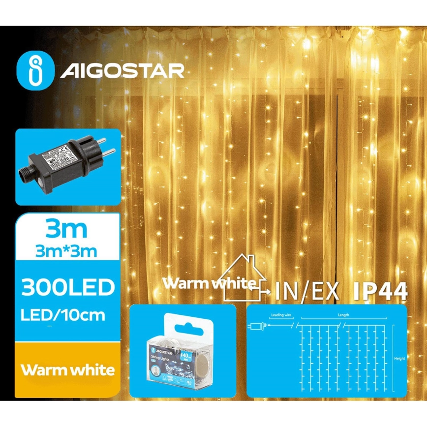 Aigostar - LED Ziemassvētku āra virtene 300xLED/8 funkcijas 6x3m IP44 silti balta | Lampupasaule