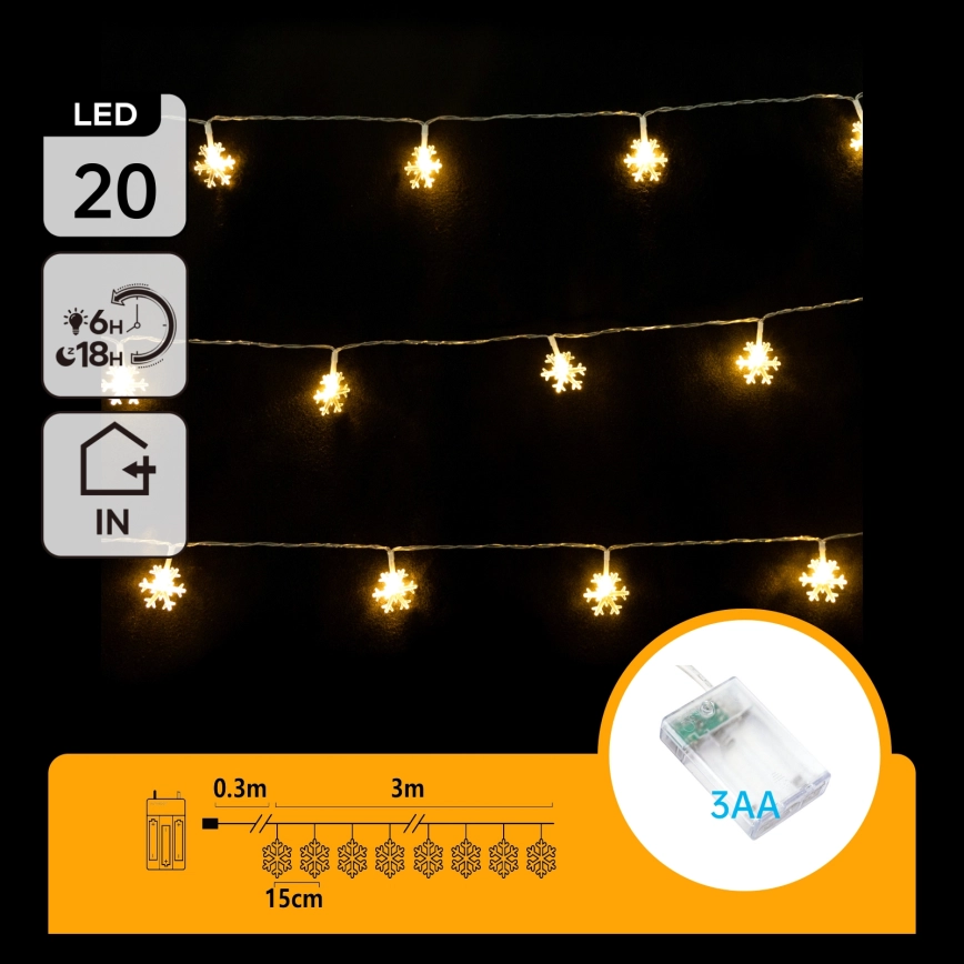Aigostar - LED  virtene 20xLED/3xAA 3,3m sniegpārslas