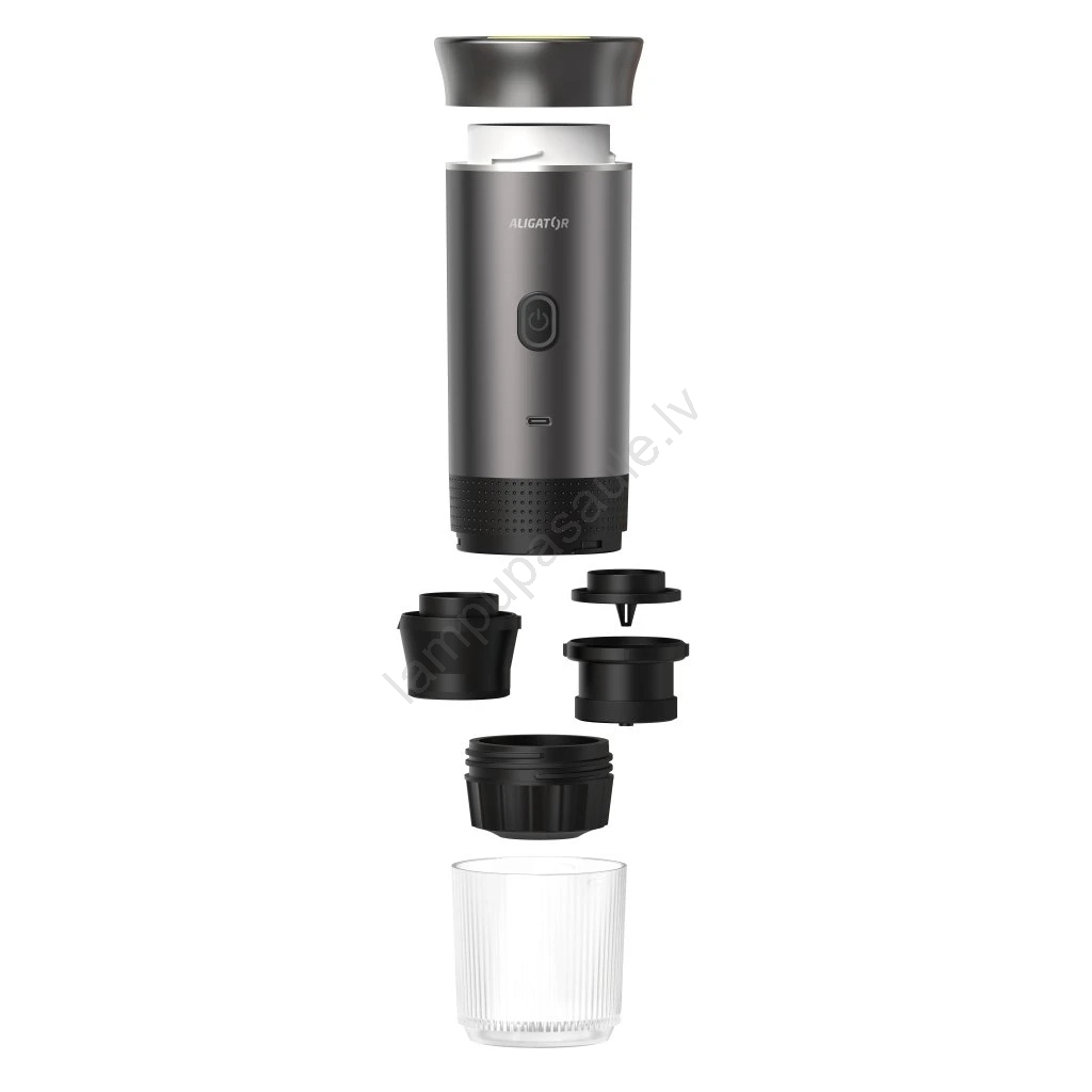 Aligator ACM002 - portatīvais uzlādējamais kafijas automāts PortaCaffé 3 vienā 72W/7500 mAh pelēks