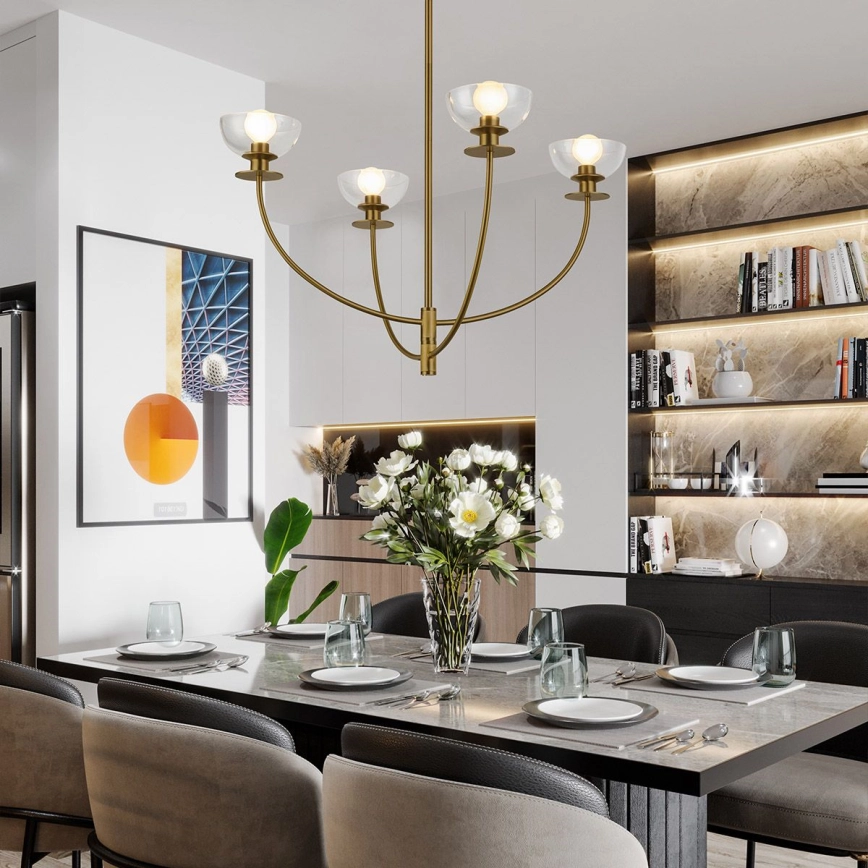 Alora Mood ALM-SYLVIA4-BG-CL - Lustra ar stieni SYLVIA 4xE14/40W/230V zelta krāsā | Lampupasaule