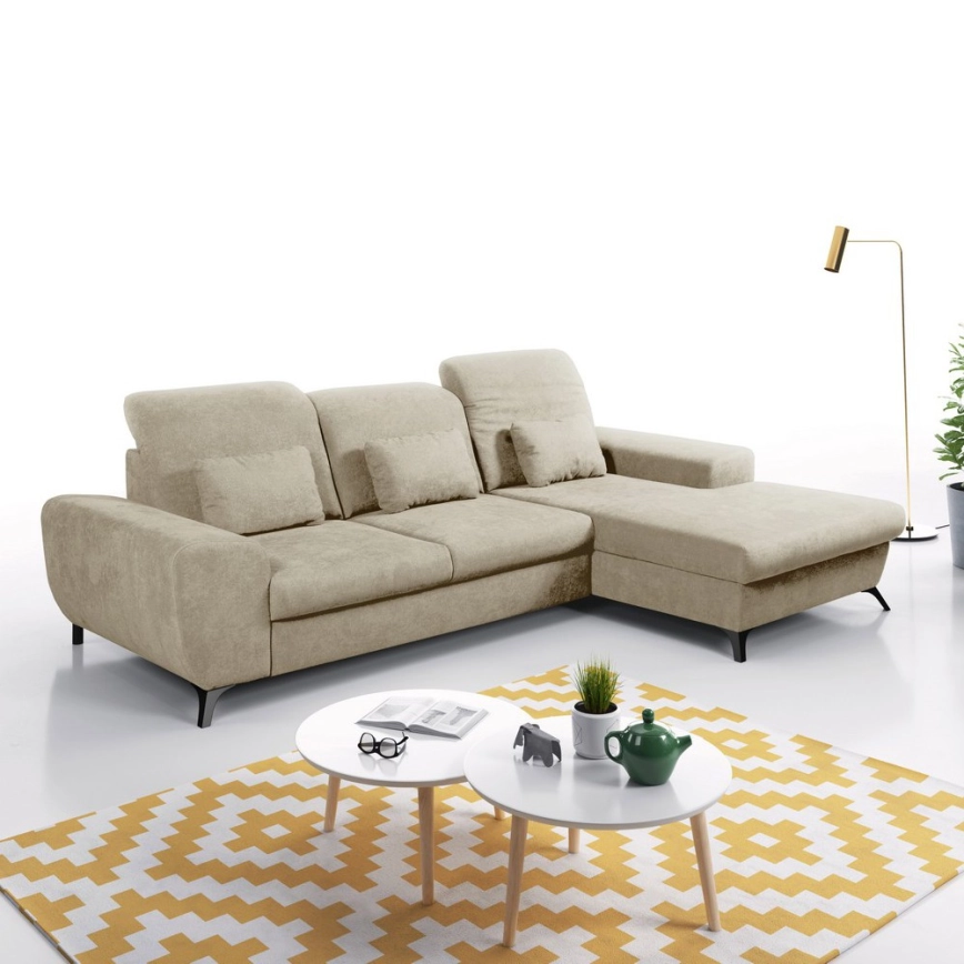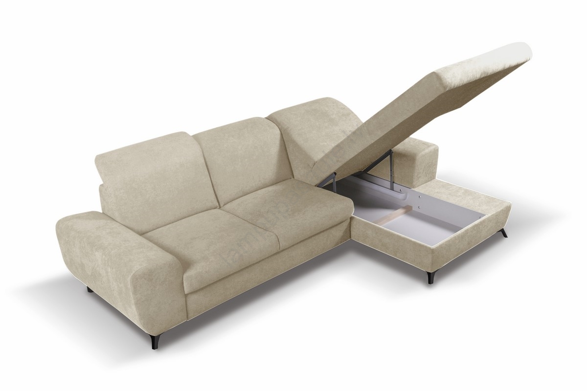 ALTA izvelkams polsterēts stūra dīvāns ar uzglabāšanas nodalījumu, L forma, labais, bēšs | Lampupasa