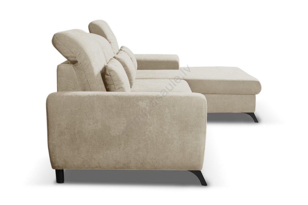 • ALTA L veida izvelkams tapisēts stūra dīvāns ar uzglabāšanas nodalījumu, labais stūris, bēšs