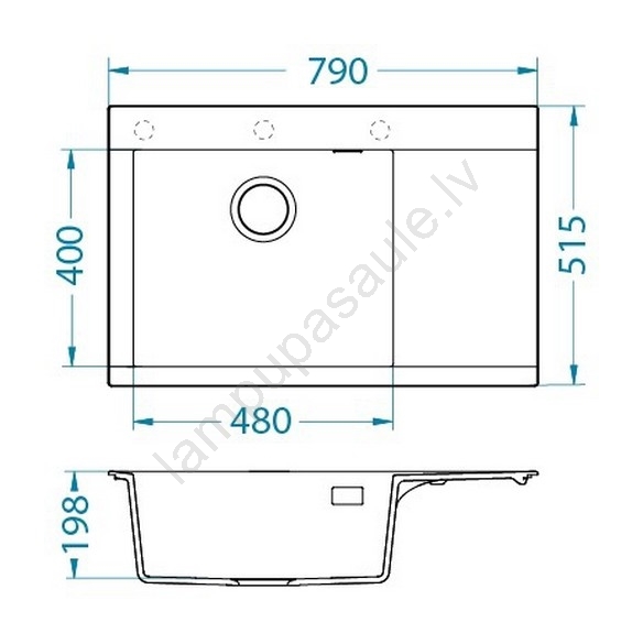 • Komplektā iekļauts: granīta izlietne, montāžas skavas, sietiņventilis 3 1/2, sifons ar atzaru trauku mazgājamajai mašīnai.