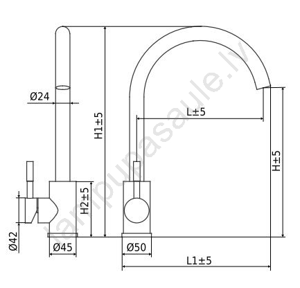 • Vienasviru virtuves jaucējkrāns ar augstu spiedienu un grozāmu izlietnes kaklu.