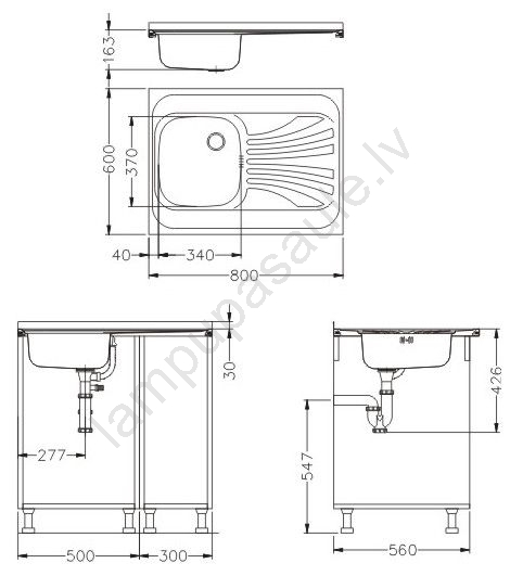 • Izlietnei ir viena liela komora, kas nodrošina pietiekami daudz vietas.
