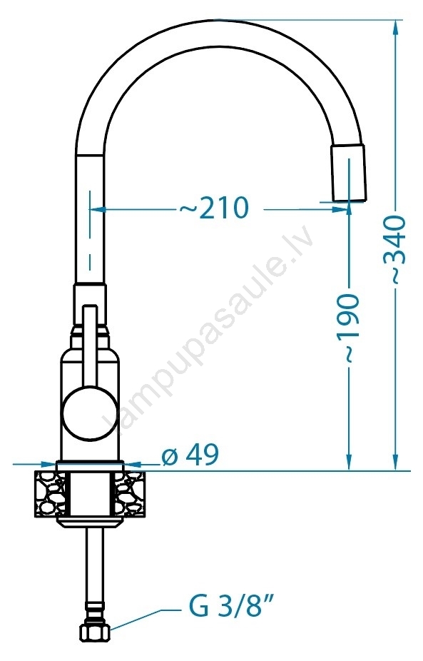 • Vienas sviras virtuves jaucējkrāns paredzēts augstam spiedienam ar grozāmu iztecētāju.