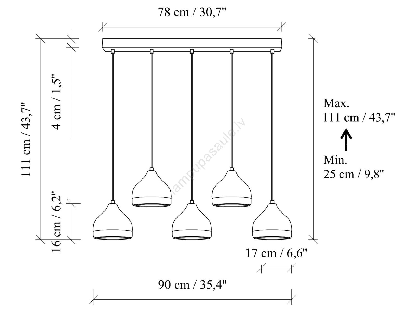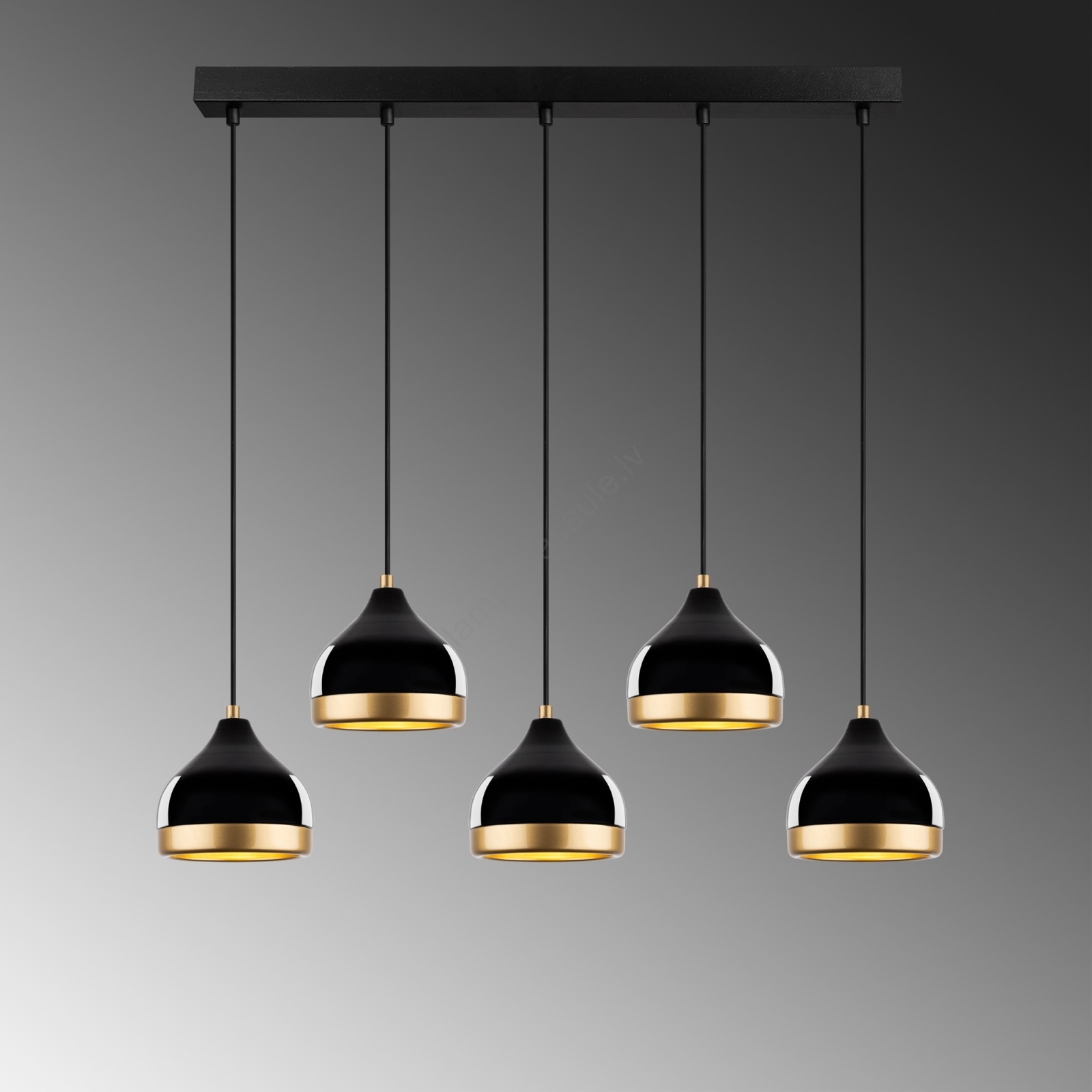 Lustra uz troses YILDO 5xE27/40W/230V melna/zelta | Lampupasaule