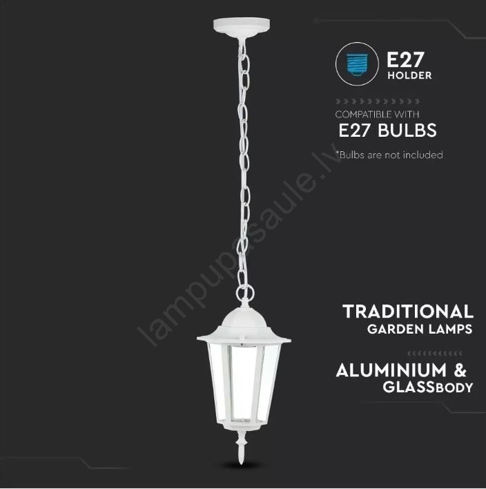 Āra lustra ar ķēdi 1xE27/60W/230V IP44 balta | Lampupasaule