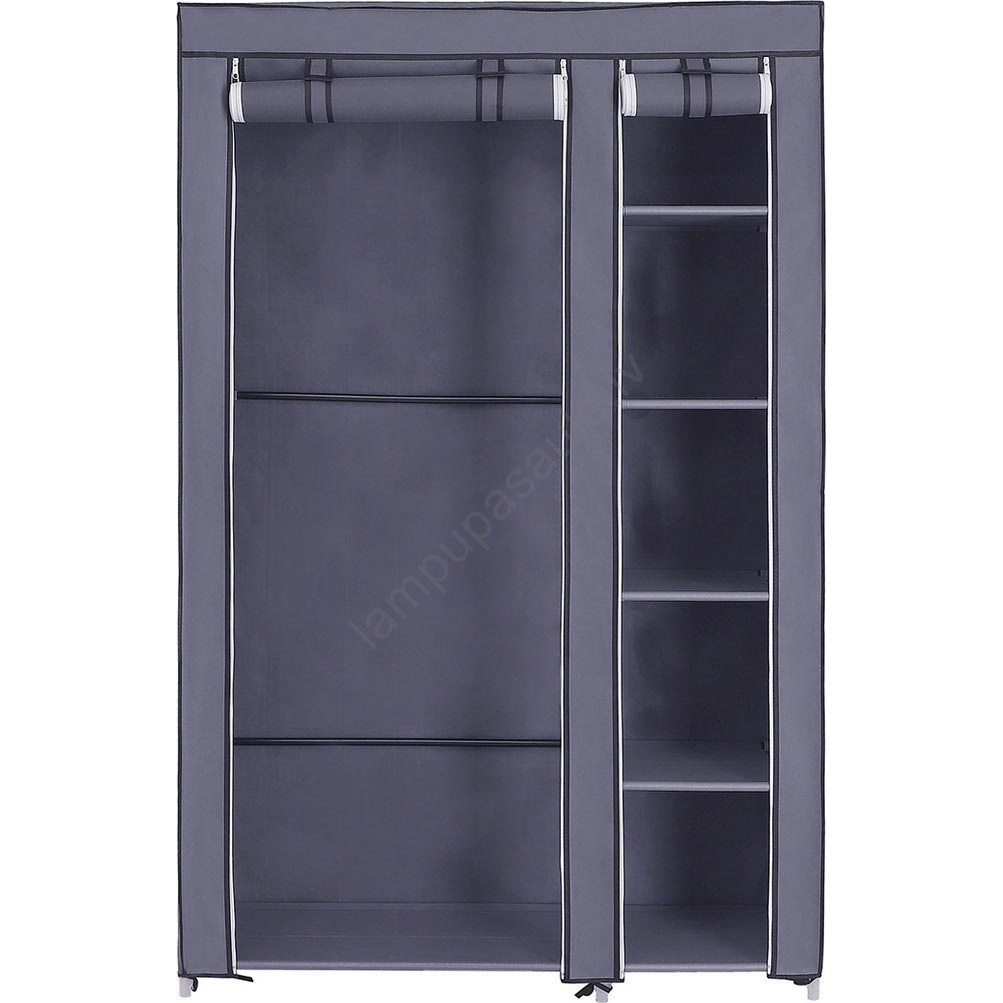 Auduma uzglabāšanas skapis MATIS 110 x 175 cm, pelēks, ar plauktiem un drēbju stieni | Lampupasaule