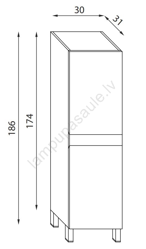 • Skapīte paredzēta uzstādīšanai uz sienas vai novietošanai uz līdzenas virsmas. (Komplektā iekļautas 4 kājiņas).
