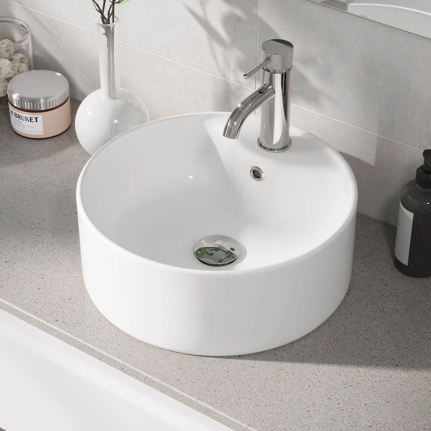 Uz virsmas uzstādamā izlietne VIKEDAL Ø 38 cm, keramiska, balta