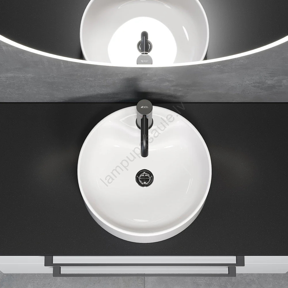 • Izlietne paredzēta uzstādīšanai uz virsmas, kas ļauj elastīgu novietošanu un kombinēšanu ar dažādu veidu vannasistabas virsmām.