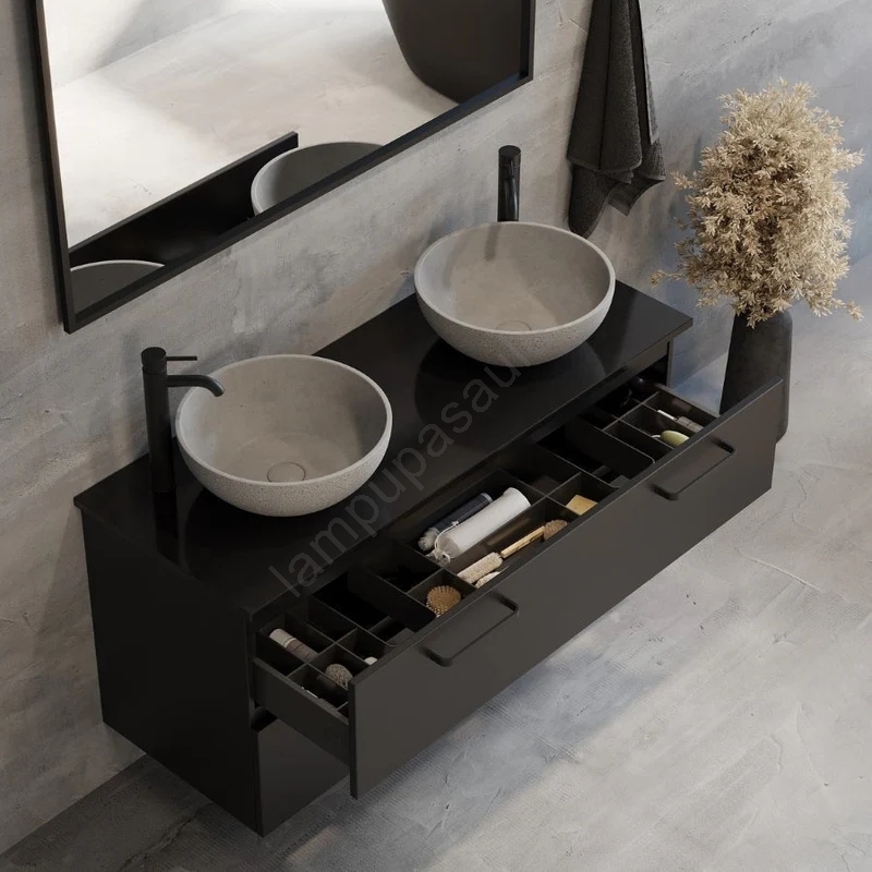 • Izlietne paredzēta uzstādīšanai uz virsmas, ļaujot elastīgi novietot un kombinēt to ar dažādu veidu vannas istabas virsmām.