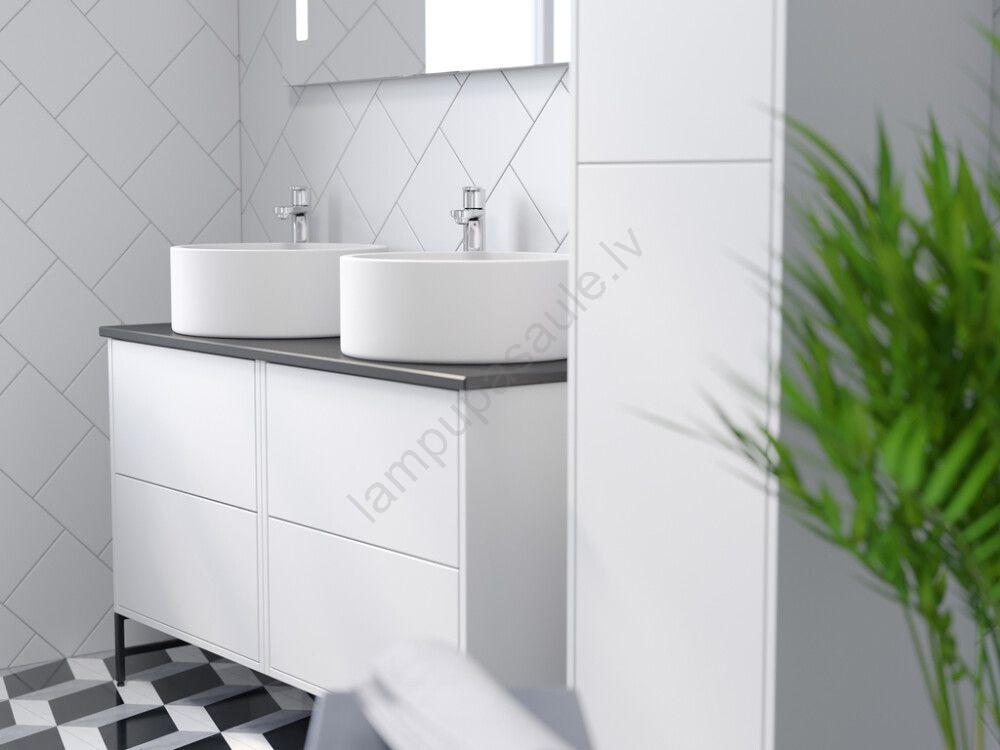 • Izlietne paredzēta uzstādīšanai uz virsmas, kas nodrošina elastīgu izvietojumu un ļauj kombinēt to ar dažāda veida vannas istabas virsmām.