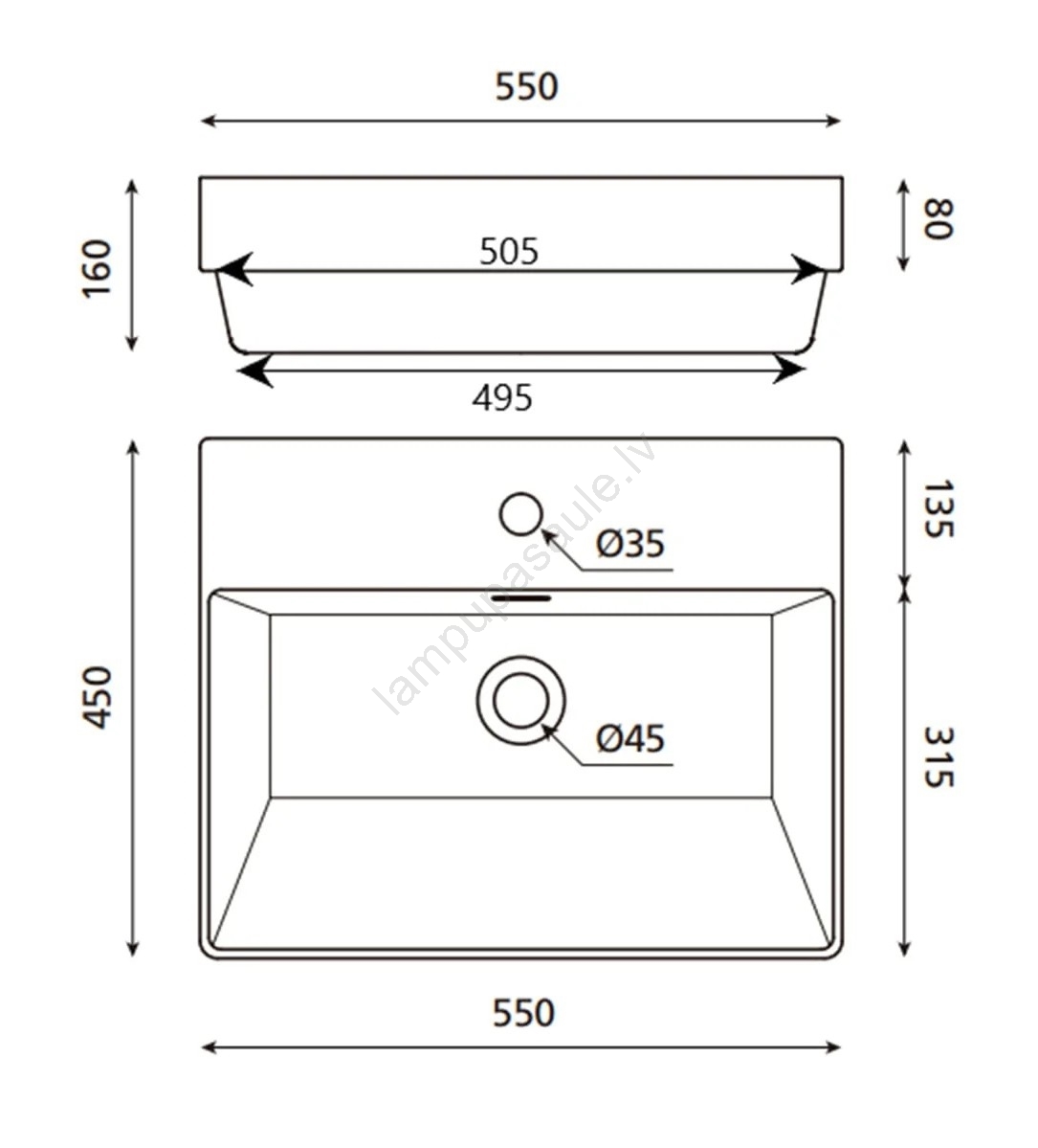 • Iepakojumā iekļauta izlietne bez sifona un jaucējkrāna.