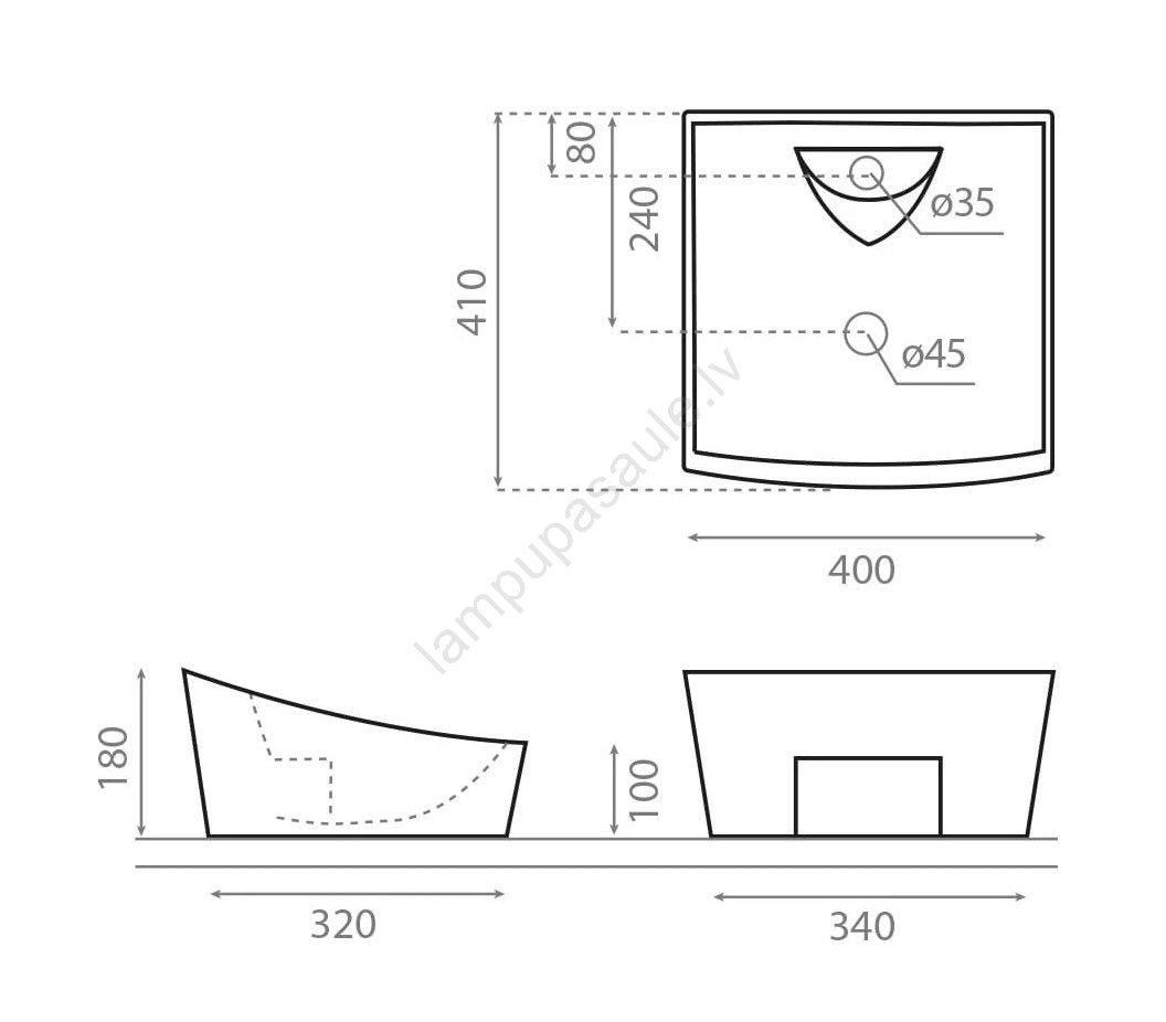 • Iepakojumā iekļauta izlietne bez sifona un jaucējkrāna.