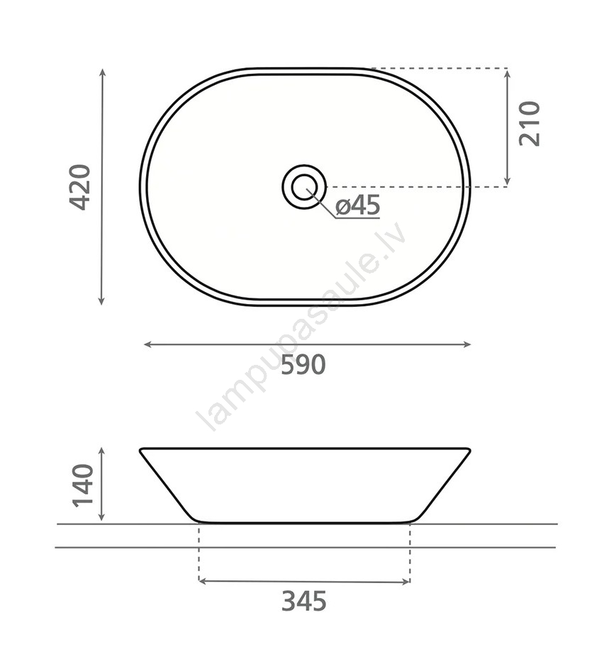 • Iepakojumā ietilpst izlietne bez sifona un jaucējkrāna.