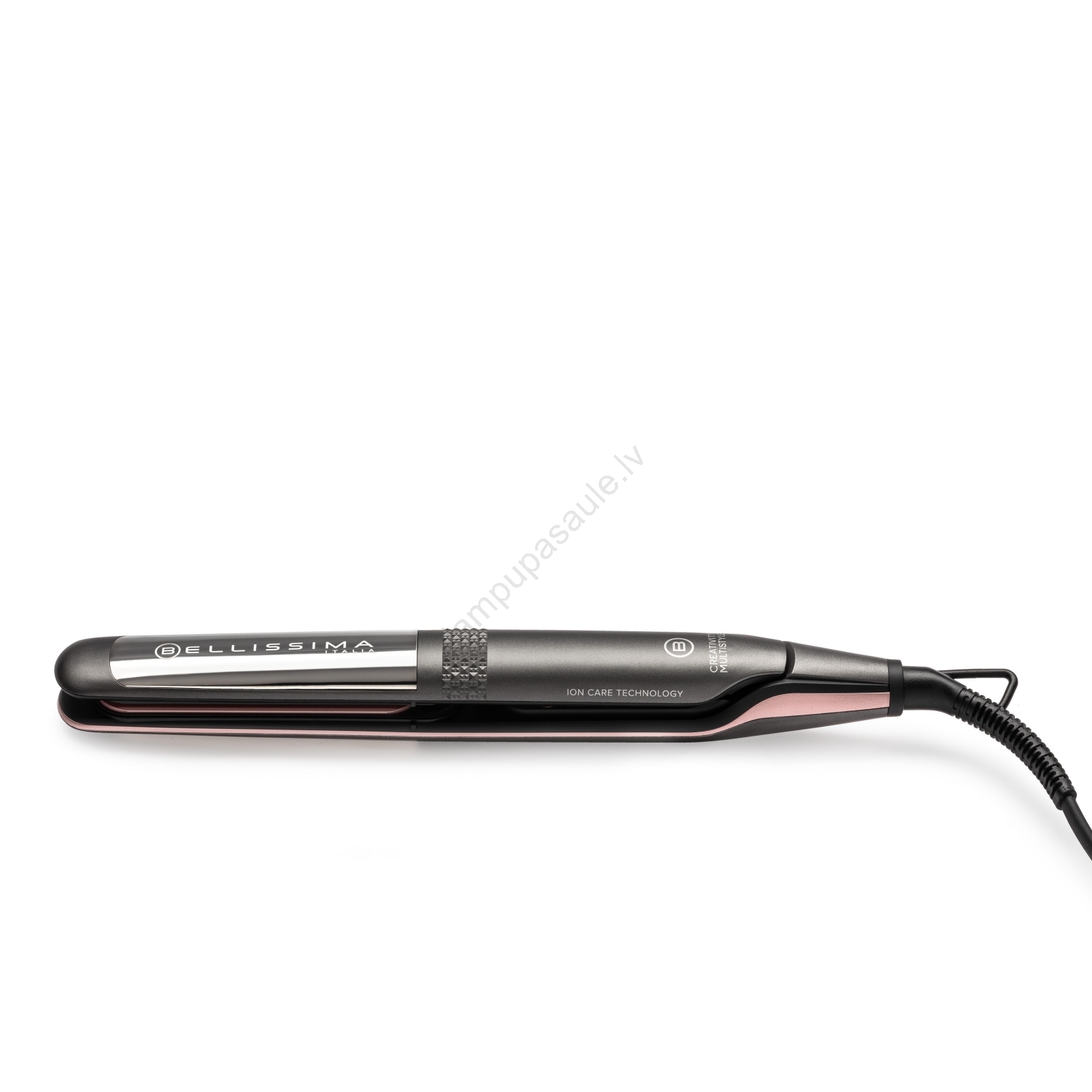 • Matu taisnotājam ir ārējā sildāmā virsma un jonu tehnoloģija matu iztaisnošanai.