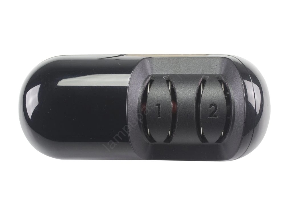 • Elektriskais divkameru nažu asinātājs ir pieejams elegantā melnā dizainā.