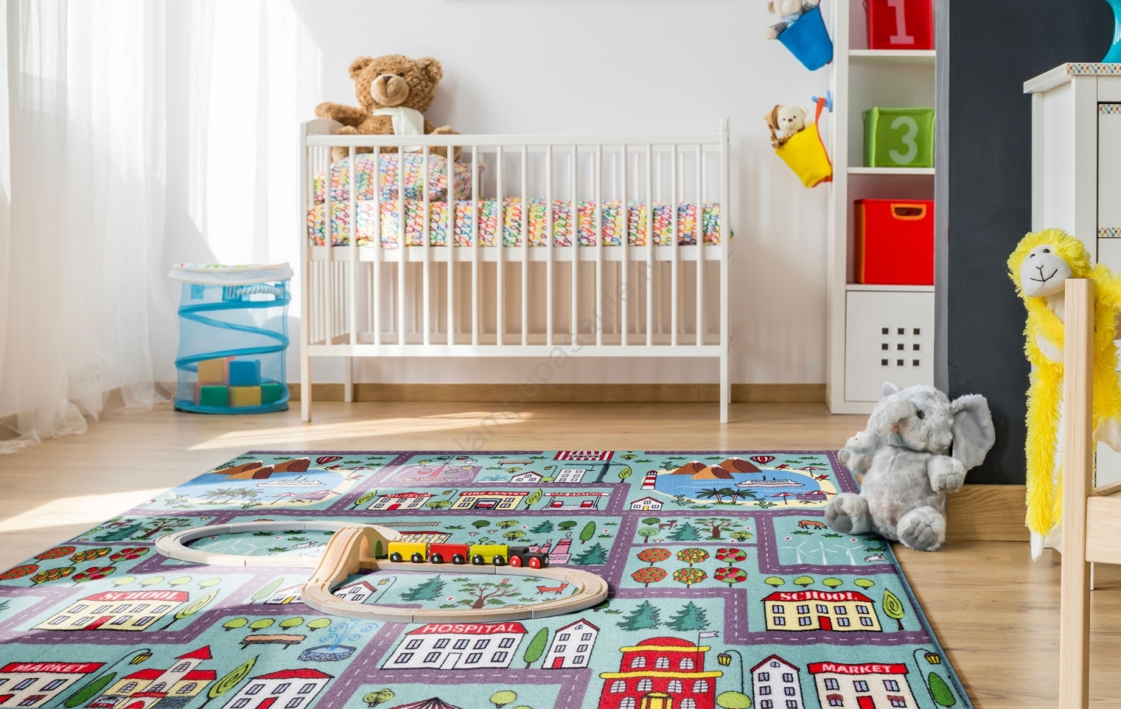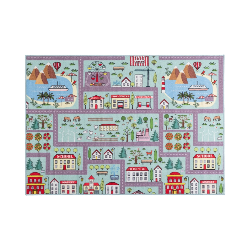 Bērnu paklājs STELLA STREETS 120x170 cm tirkīza/pilsēta