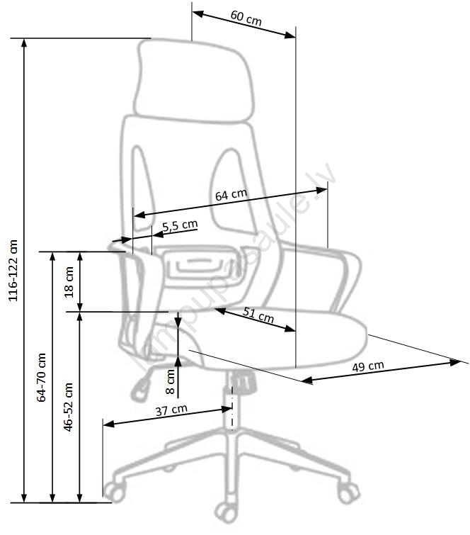 • Galvas balsts sniedz stabilu atbalstu un komfortu ilgstošas sēdēšanas laikā.