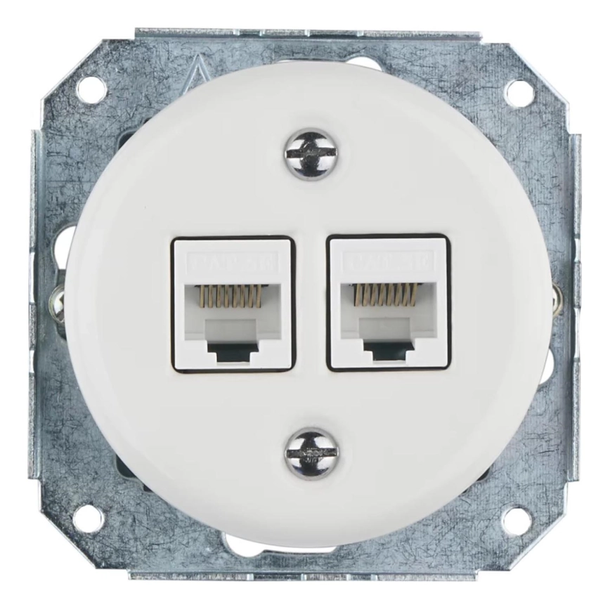 Bohemia-Design - porcelāna retro Ethernet ligzda bez rāmja, 2x CAT.5E, balta | Lampupasaule
