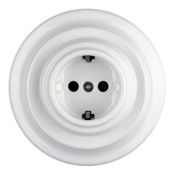 Bohemia-Design - retro porcelāna sienas kontaktligzda ar rāmi SCHUKO 250V/16A balta | Lampupasaule