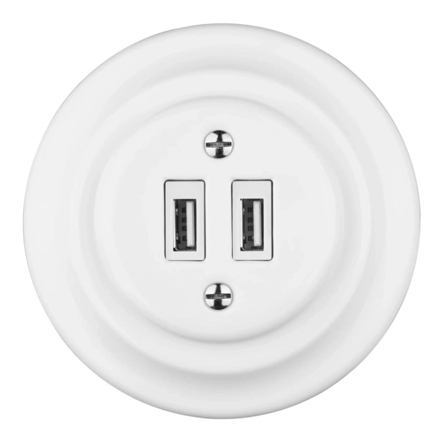 Bohemia-Design - Porcelāna retro USB barošanas rozete ar rāmi 2x USB-A balta | Lampupasaule
